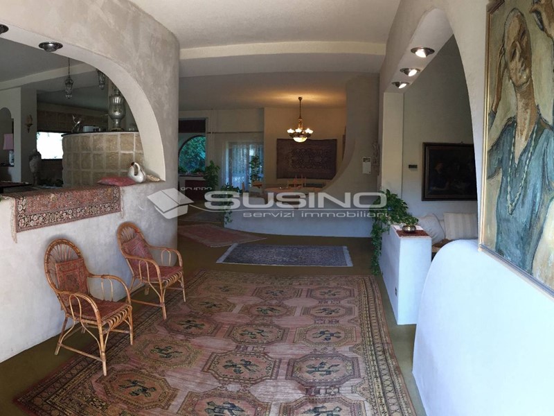 Gli interni continuano con una comoda cucina - soggiorno con affacci sul giardino filtrati da un patio. Completano la distribuzione le camere da letto con relativi servizi privati e un mini appartamento accorpato alla villa.