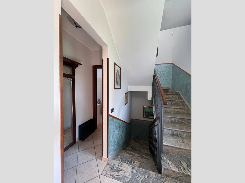 La proprietà si apre con un ingresso elegante, che ci conduce direttamente sul salone, proseguendo troviamo una cucina ed un bagno con vasca il tutto al piano terra. Una scala interna rivestita in marmo conduce al primo piano, dove si trovano una camera da letto matrimoniale con cabina armadio, due camerette luminose e un bagno con doccia. Tutte le stanze da letto si affacciano su un ampio balcone panoramico con una vista mozzafiato.