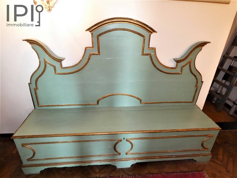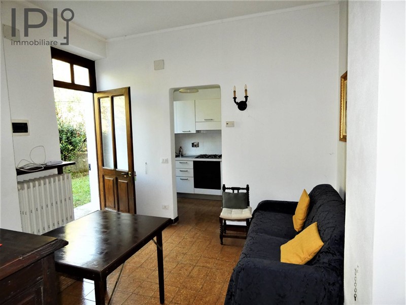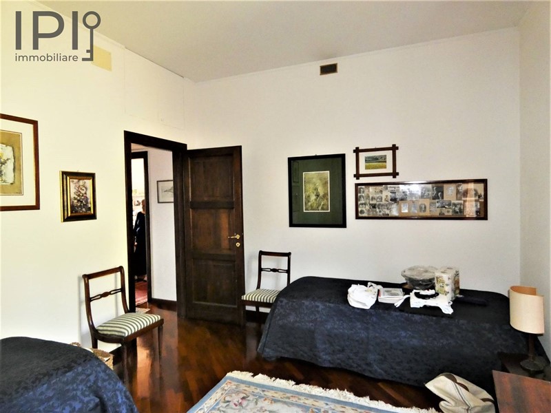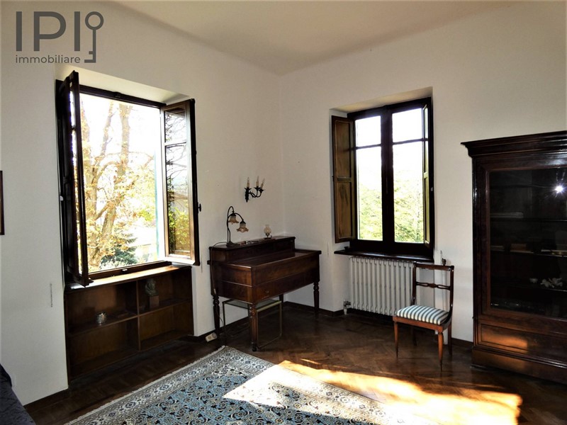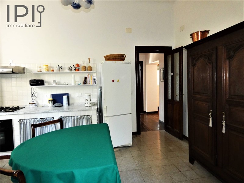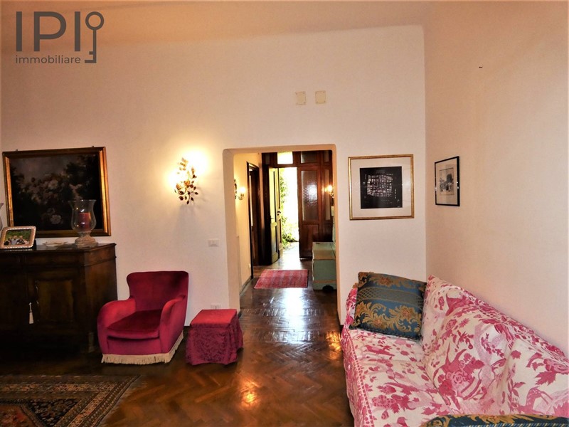 A piano terra troviamo il primo appartamento con imponente portone di entrata in legno, che conduce al corridoio su cui si affaccia una prima camera da letto, un grande salone con terrazza, la cucina con accesso anche al giardino, tramite una porta finestra, il bagno con bellissimo doppio lavello in marmo e doccia di dimensioni importanti e ancora una camera da letto. Tutti i pavimenti, ad eccezione di quello del bagno, sono in parquet originale, mentre gli infissi in legno vetro singolo. Sempre al piano ancora una parte collegata che volendo ha accesso indipendente dall'esterno, costituita da due vani, un cucinino e un bagnetto con doccia anni 90. Qui troviamo i pavimenti in graniglia.