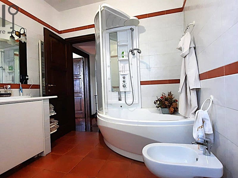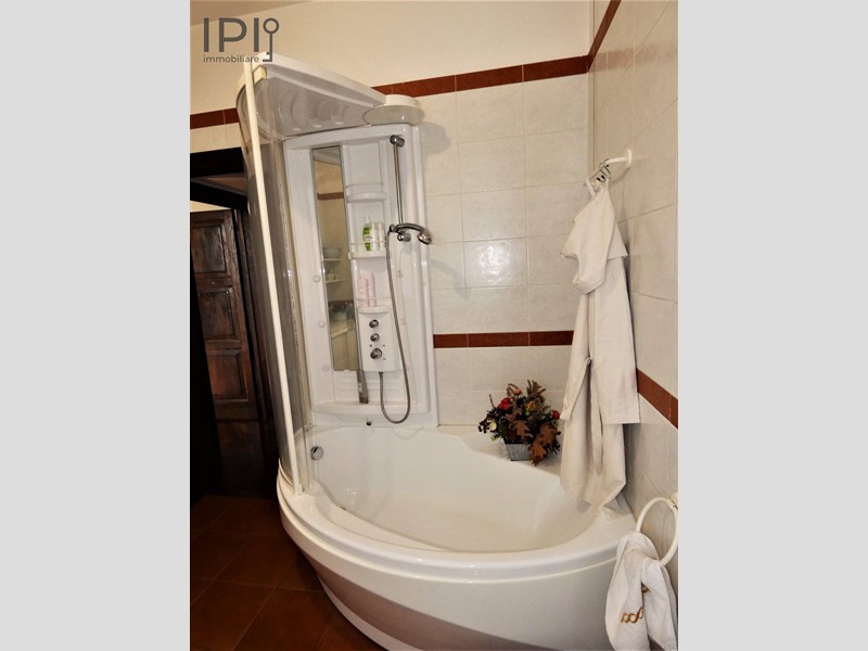 su zona di passaggio con camera, cucina in marmo, salone aperto con bellissimo caminetto in marmo, altra camera con bagno privato con doccia, bagno padronale in marmo con vasca/doccia idromassaggio e altre due camere da letto. A questo livello abbiamo pavimenti in parquet molto belli, infissi in pvc doppio vetro e particolari d'epoca curati. Dalla cucina abitabile, accesso tramite botola al sottotetto che consentirebbe un bel ampliamento.