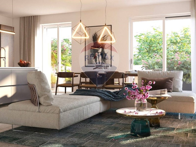 Lingresso si apre su unampia zona giorno doppia ed open space con cucina a vista, caratterizzata da grandi vetrate che collegano perfettamente linterno con lesterno. Il terrazzo, coperto e ben proporzionato, è pensato per accogliere una zona pranzo allaperto e un angolo relax.