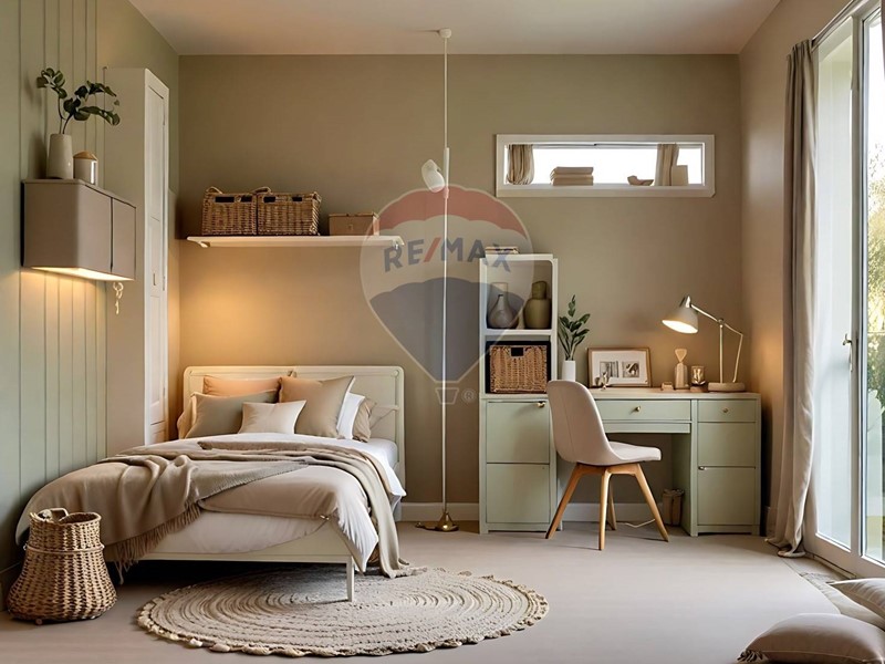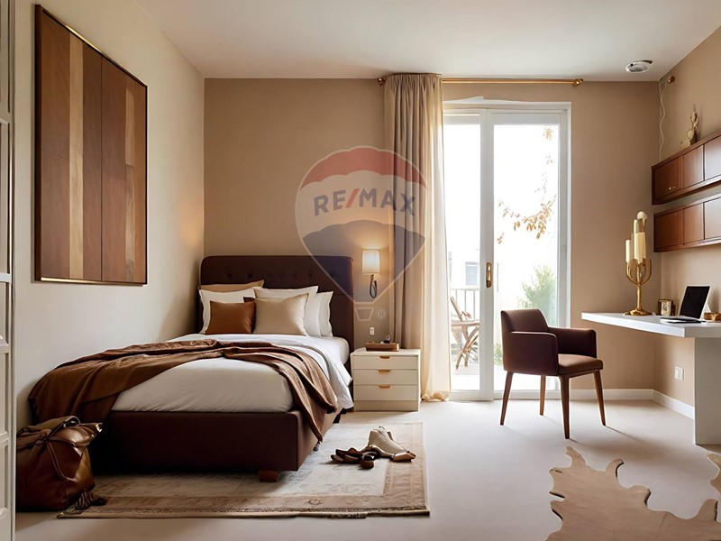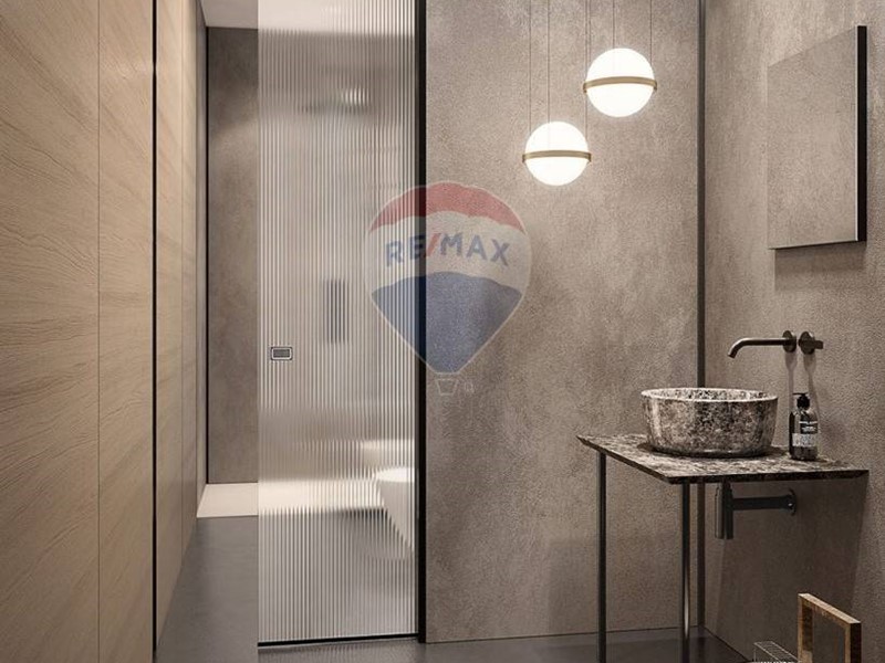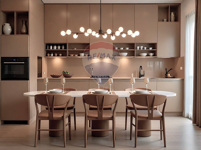 Lingresso si apre su unampia zona giorno doppia ed open space con cucina a vista, caratterizzata da grandi vetrate che collegano perfettamente linterno con lesterno. Il terrazzo, coperto e ben proporzionato, è pensato per accogliere una zona pranzo allaperto e un angolo relax.