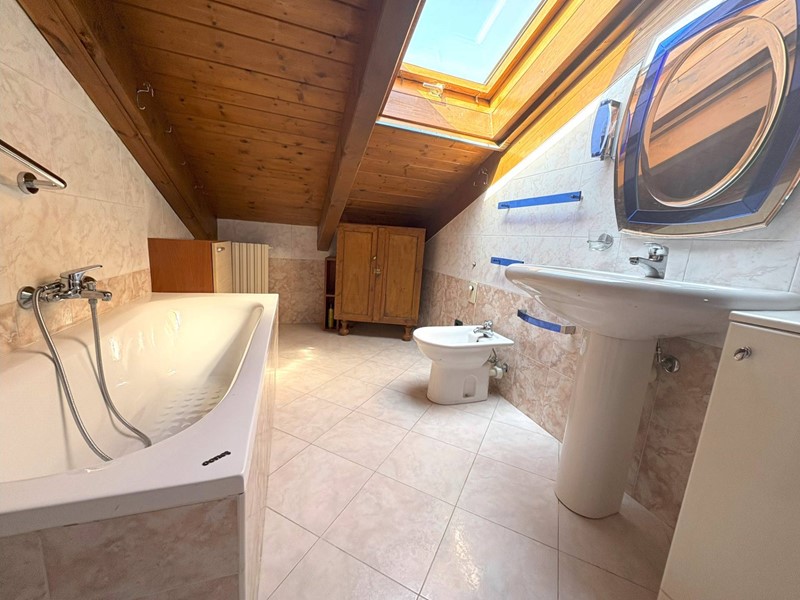 Il sottotetto al piano superiore è accessibile dal soggiorno tramite una scala. E presente un bagno con sanitari e vasca da bagno. E dotato di lucernari in legno e doppi vetri ad apertura manuale e uno split per laria condizionata.