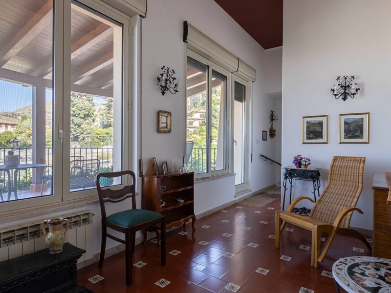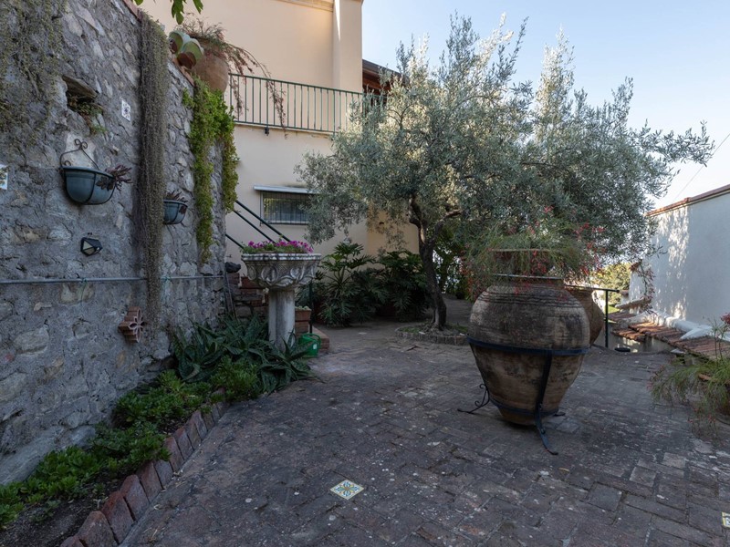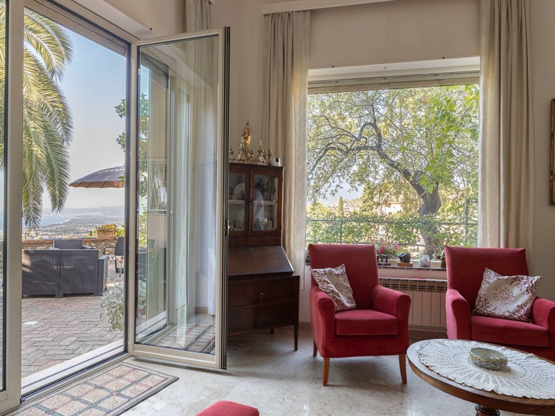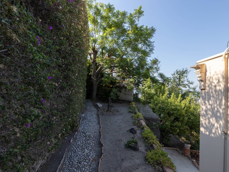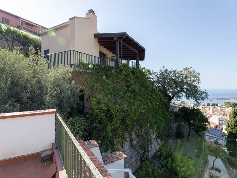 A pochi passi dal Centro Storico,proponiamo interessante Villa Panoramica con depandance e garage stile siciliano in ottimo stato,composta da un corpo centrale su due livelli:piano terreno zona giorno con salone triplo con caratteristico caminetto,cucina,bagno,ripostiglio e ampi terrazzi;piano primo zona notte,tre camere da letto,due bagni ed ampi terrazzi.La Villa è attigua ad una dependance e un ampio garage.Circondata da ampi spazi esterni di circa 450 mq. con vegetazione mediterranea in buono stato di manutenzione. Ha due comode entrate,una dal civico 25 e una dal civico 33 nel quale ci potrebbe essere la possibilità di un ampliamento per realizzare un posto auto.Ad oggi la Villa è dotata di un serbatoio per l'acqua di 500 litri ed un vano attrezzi con la possibilità di realizzare una piscina.La struttura per la sua panoramicità e la posizione servita anche dai mezzi pubblici si presta anche per struttura ricettiva.