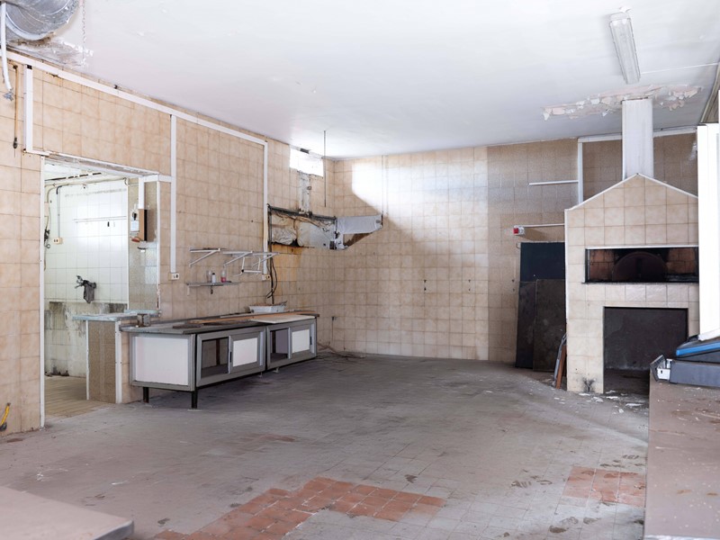 Il ristorante, che rappresenta il cuore del complesso, si estende su una superficie interna di circa 350 mq. Gli spazi sono organizzati in maniera funzionale e comprendono due ampie sale dedicate agli ospiti, dotate di un totale di cinque servizi igienici (2 nella sala più piccola e 3 nella sala più grande). La cucina è ampia , con bagno privato destinato esclusivamente al personale.