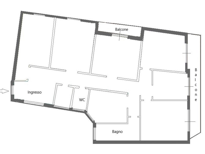 5 camere, la cucina, doppi servizi, due balconi e un vano lavatoio sul lastrico solare praticabile.