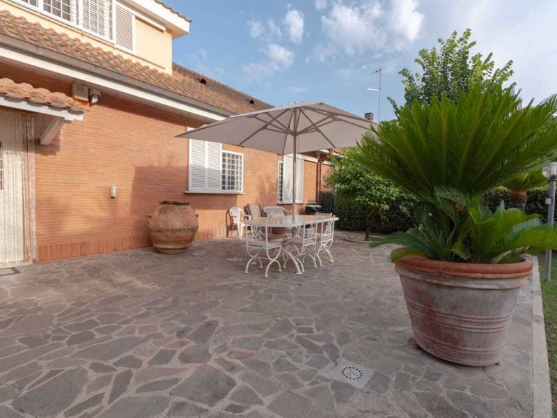 Aurelia, Vicolo del Casale Lumbroso, in residence con servizio portineria, villa immersa nel verde su tre livelli composta : piano terra salone doppio , camera padronale con bagno privato cabina armadio , due camere , bagno, cucina abitabile , veranda con affaccio sul giardino ; al primo piano ampia camera con cabina armadio e bagno ; al piano seminterrato: salone triplo con accesso diretto in giardino cucina abitabile camera bagno e lavanderia , box quadruplo con accesso diretto da Vicolo del Casale Lumbroso. CL G 175 IPE.
