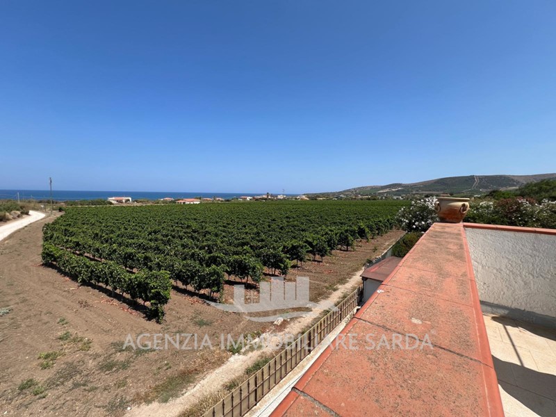 A pochi minuti dal mare, immersa nella tranquillità della campagna sarda e circondata da vigneti, proponiamo in vendita una deliziosa villetta indipendente con giardino privato e splendida vista panoramica a 180° sul mare.