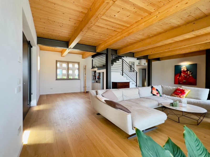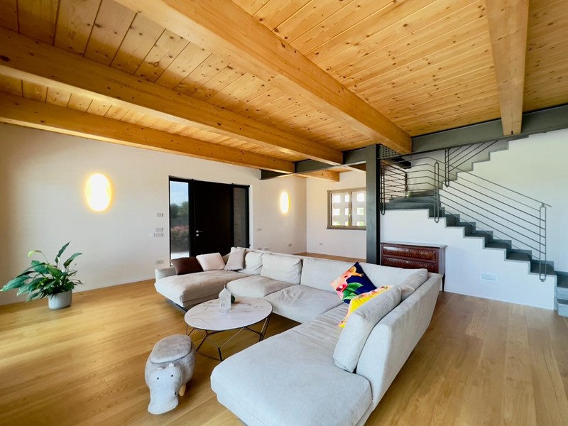 L’immobile è dotato di impianto antifurto volumetrico e perimetrale in giardino con accensione luci, ventilazione meccanica, pompa di calore riscaldamento/raffrescamento a pavimento.