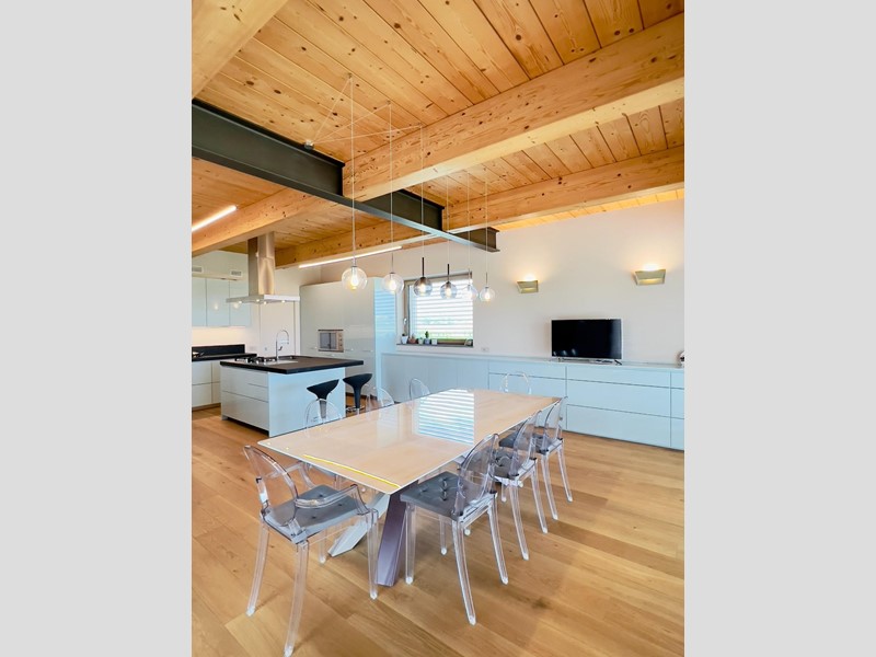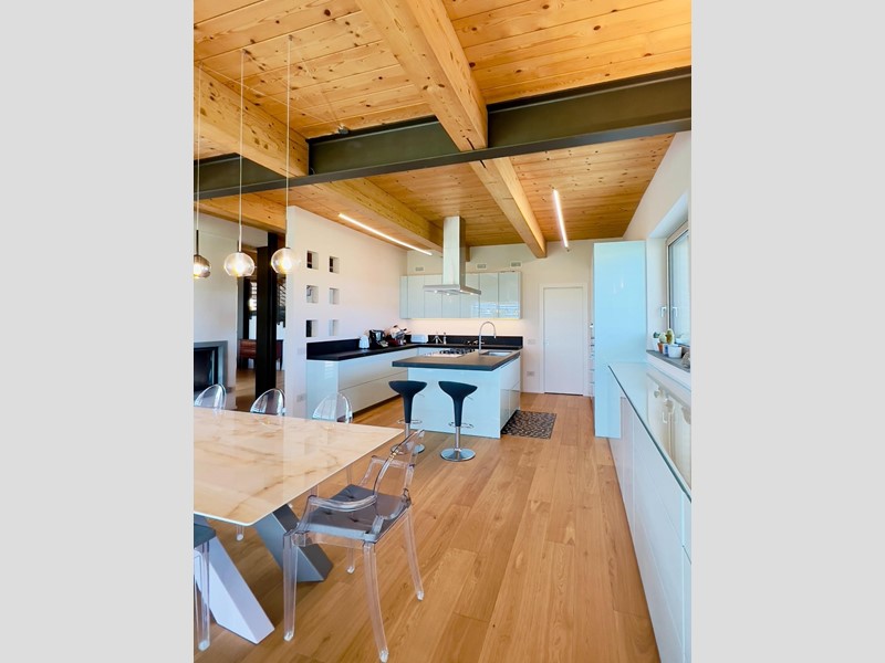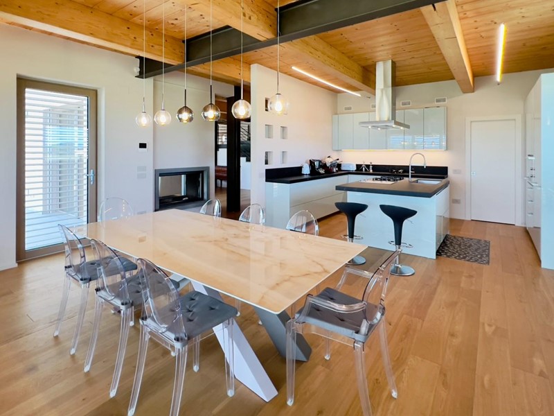 Less is More: è proprio il caso di dirlo. Superba villa ultramoderna dalle linee pulite accompagnate dal caldo colore del legno dei pavimenti in parquet e dei solai arricchiti da longherine in metallo. In questa eccezionale residenza, gli spazi generosi inondati di luce naturale, entrano in connessione con il verde del parco circostante.