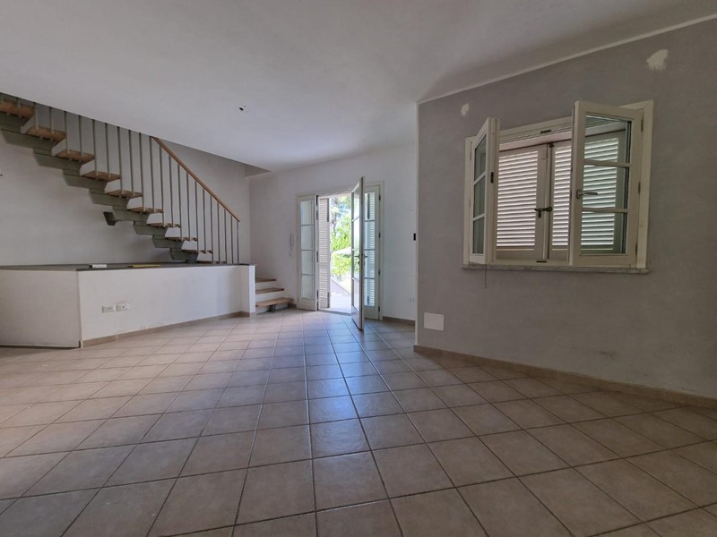 Piano terra rialzato: ingresso da terrazza su ampio soggiorno, cucina abitabile, disimpegno, camera matrimoniale e bagno con finestra.