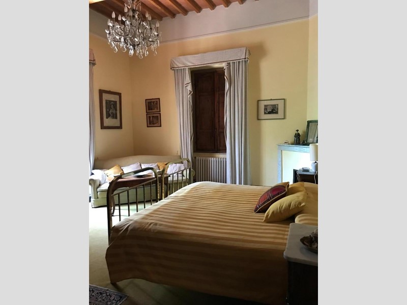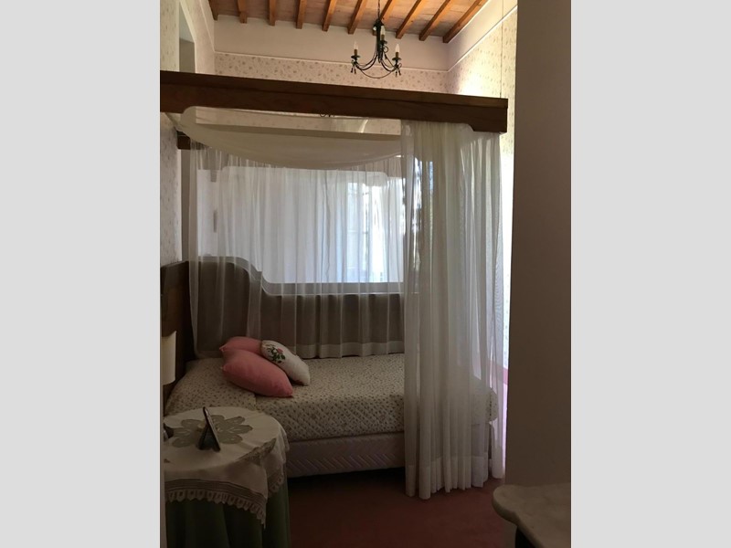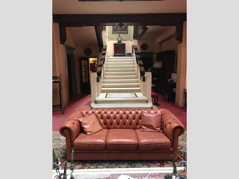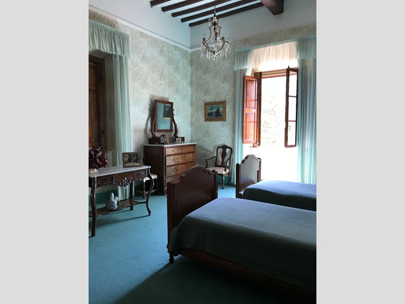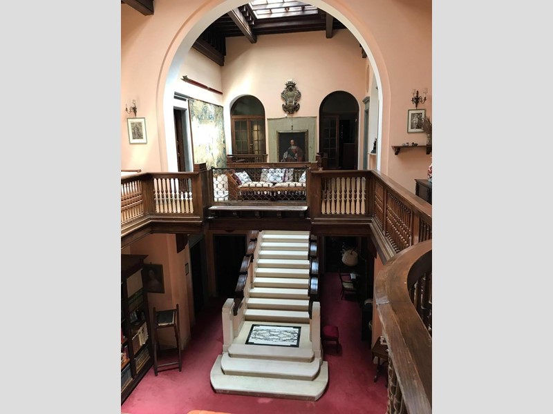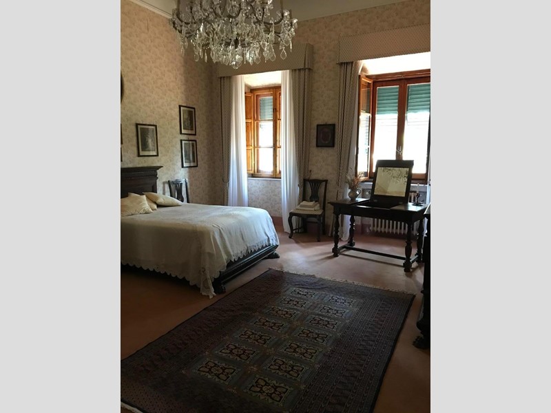 Dalla zona centrale si accede al piano superiore, reparto notte, attraverso una imponente scala in pietra, qua troviamo 8 camere da letto matrimoniali e 7 bagni. Tutte le camere eccetto una hanno il loro bagno privato e all’interno di esse si respirano ricordi di “un tempo che fu”, ogni stanza è adornata da decorazioni in legno sapientemente lavorate da abili artigiani. Conclude la villa un piano mansardato grande quanto tutto la pianta della casa, quest’area può essere destinata a zona ripostiglio/magazzino o altra destinazione.