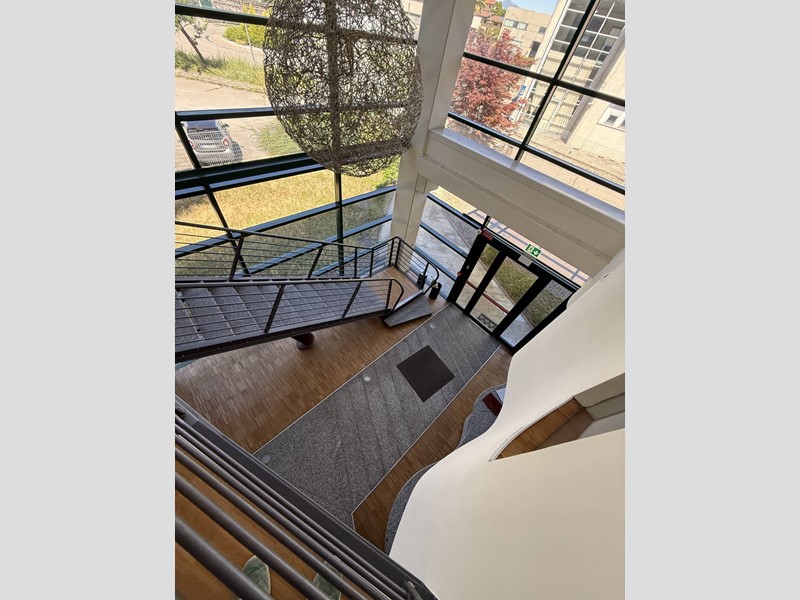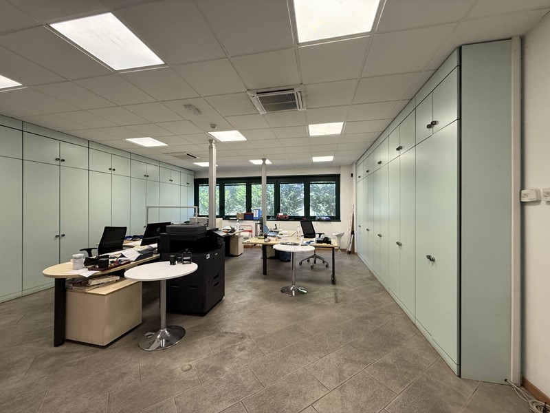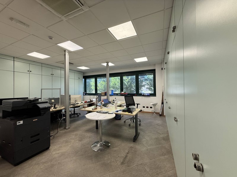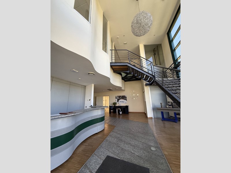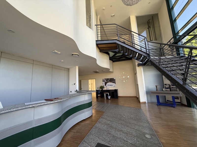 Primo Piano: Collegato al piano terra da una scala e da un ascensore, ospita gli uffici commerciali, l'ufficio tecnico e gli uffici direzionali e amministrativi, tutti dotati di servizi igienici completi (vaso, bidet e lavabo).