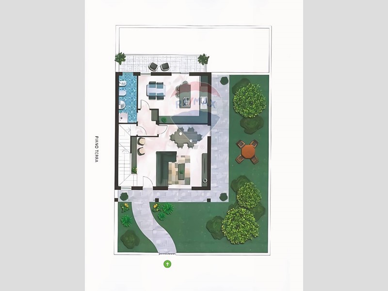 Piano cantinato: accessibile anche dal giardino attraverso un ingresso indipendente con corsia carrabile, internamente cosi diviso: garage biauto, e zona cantina un ampio vano living, servizio igienico, e tramite scala interna si arriva al piano terra.