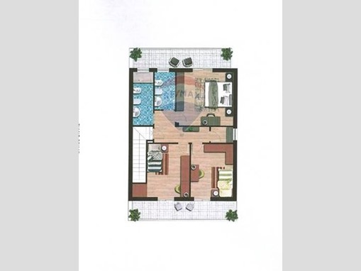 Piano primo sono presenti 3 camere da letto, la matrimoniale con bagno e con balcone vista mare, un secondo bagno e le due camerette con vista Etna