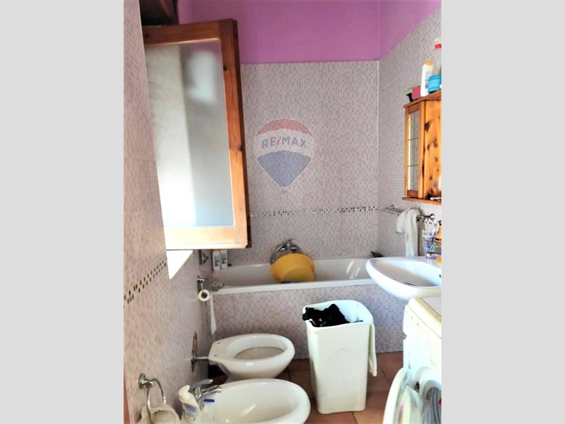 Il bagno è moderno e funzionale, con la possibilità di aggiungere lavatrice e asciugatrice.