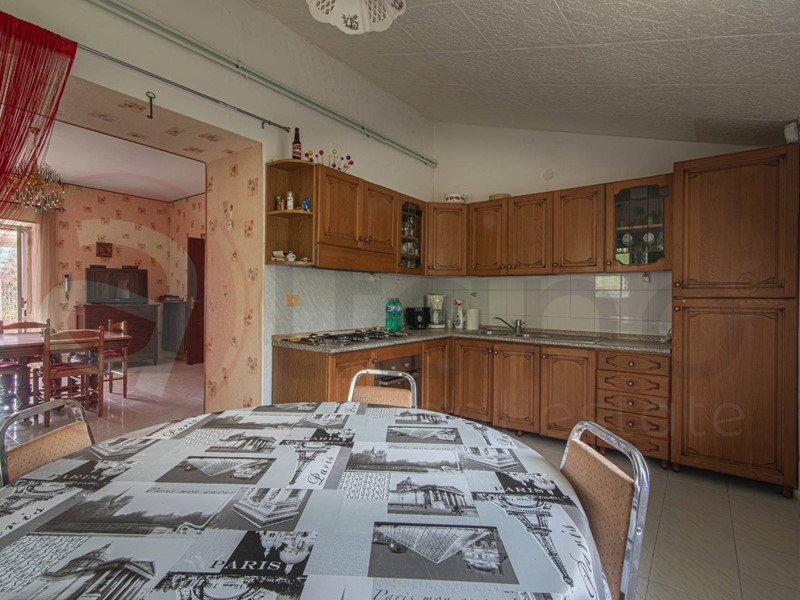 L'ingresso al piano terra accoglie con luminosità e calore, rivelando un'accogliente cucina abitabile, perfetta per riunioni familiari e momenti conviviali.