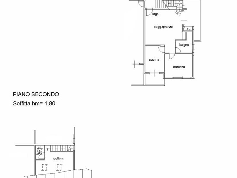 II livello (mansarda): ampia camera con servizio ed alti lucernari.