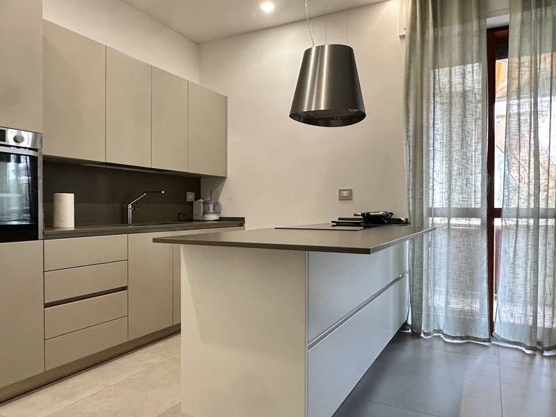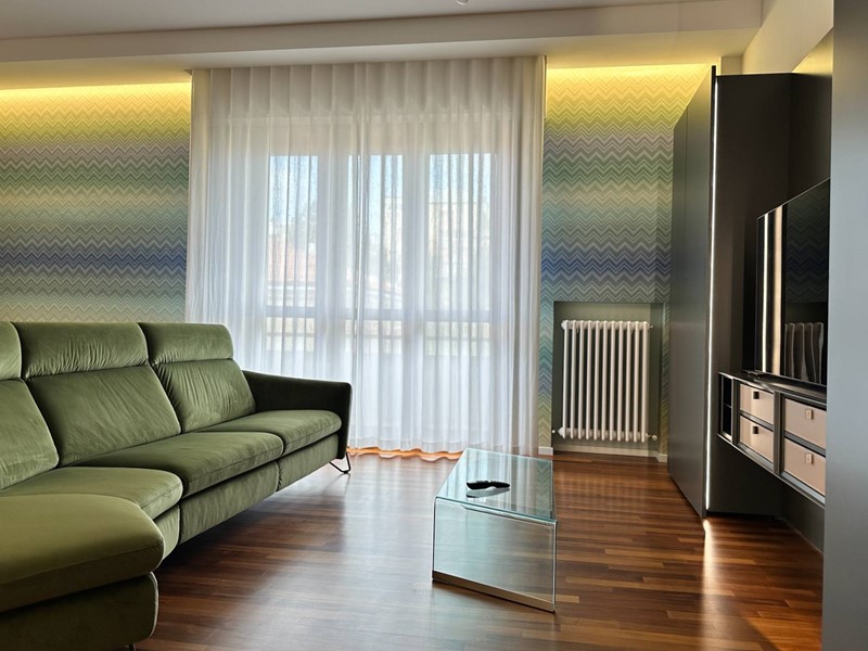 La residenza, con affaccio su tre lati, ha una superficie interna di circa 170 mq. così distribuiti: un ampio salone luminoso con accesso diretto al terrazzo e all'ampia loggia ben vivibile e praticabile; dallingresso si accede al corridoio che conduce da un lato alla cucina con zona pranzo in open space e ampio balcone, dall'altro a una camera da letto (o studio), un ripostiglio e un bagno finestrato; un ulteriore disimpegno immette nel reparto notte dove troviamo due camere matrimoniali, entrambe con ampio balcone dedicato, e un secondo bagno con finestra. Tutti i balconi e la terrazza sono dotati di tende da sole.