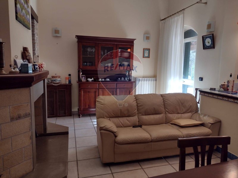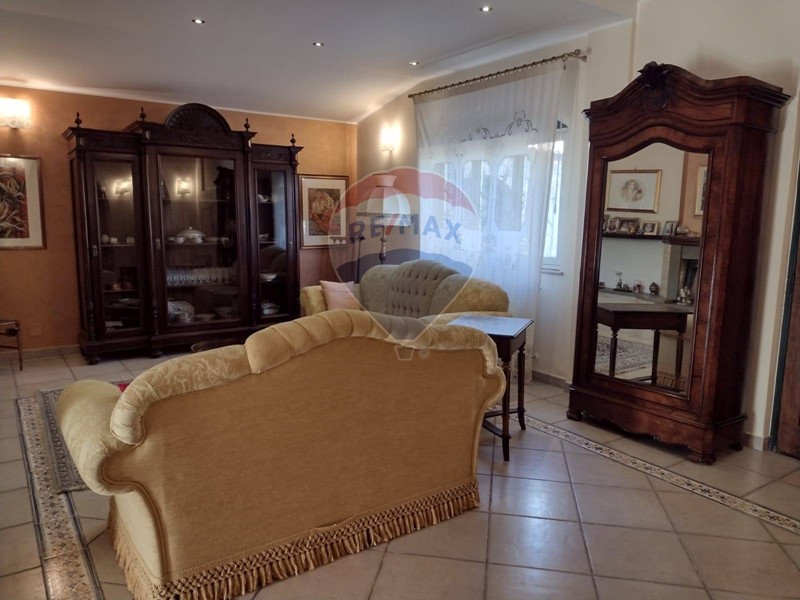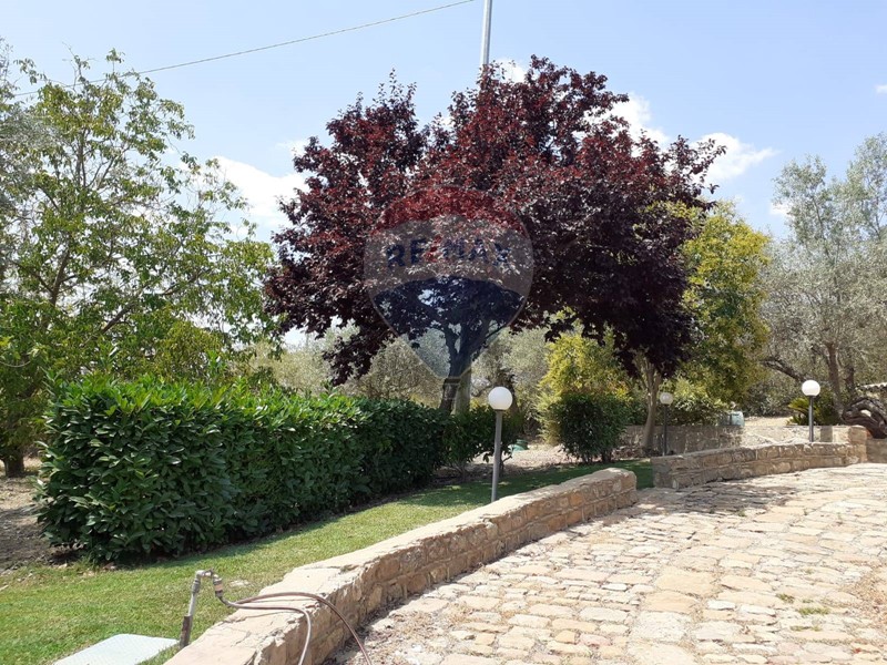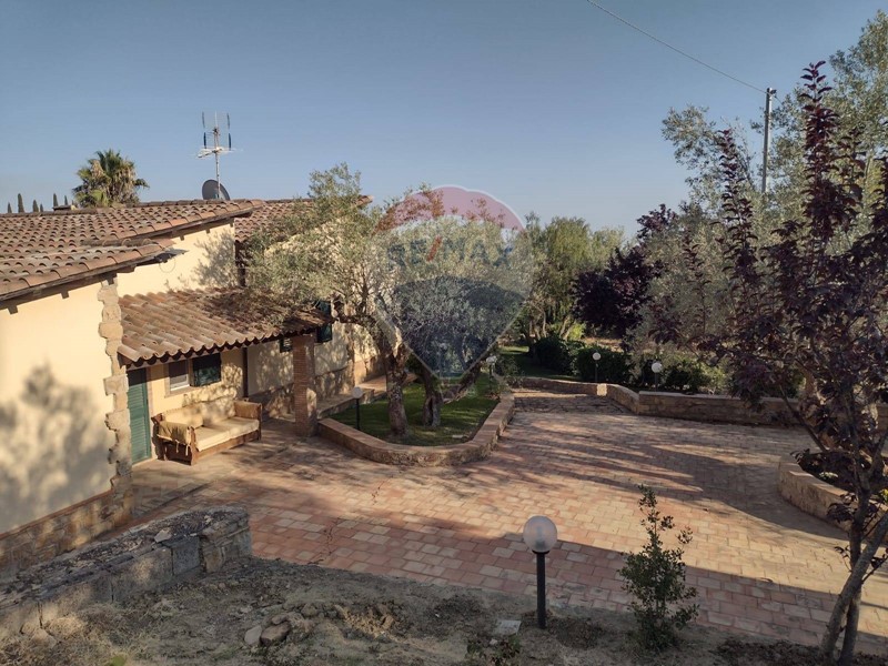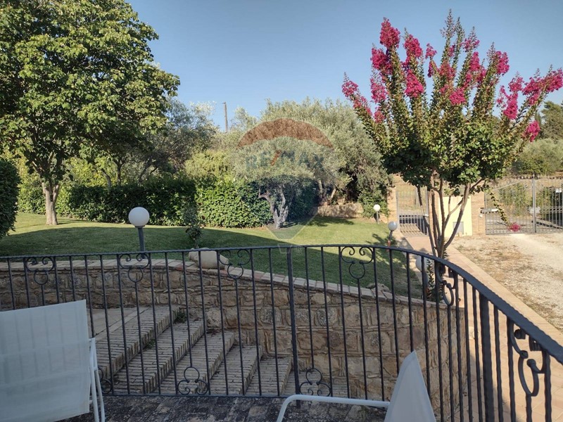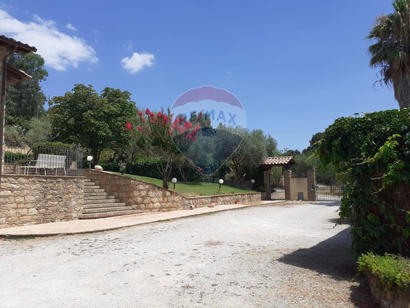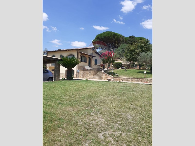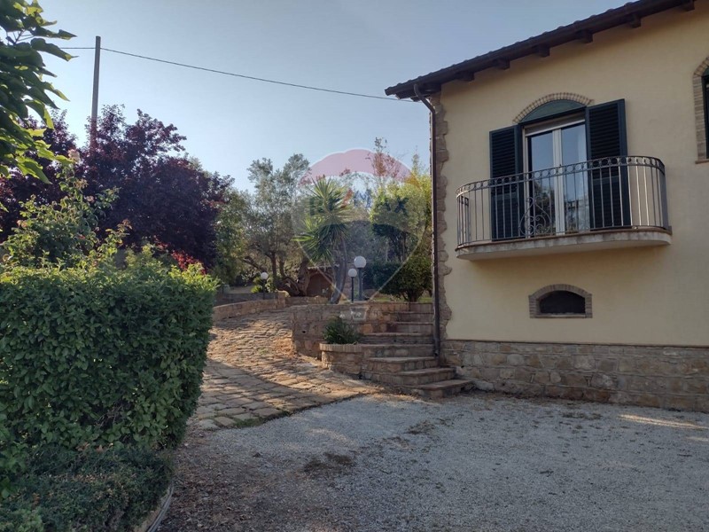 Gli spazi sono distribuiti in 11 locali, tra cui 4 camere da letto due saloni doppi, una cucina soggiorno, 3 bagni, portico, poco distante dalla villa una casetta rurale di 40 mq. con pannelli fotovoltaici composta da due camere adatta per deposito e cantina, terreno circostante alla villa in parte con prato inglese in parte con piante di ulivo e vari alberi di frutta varia.