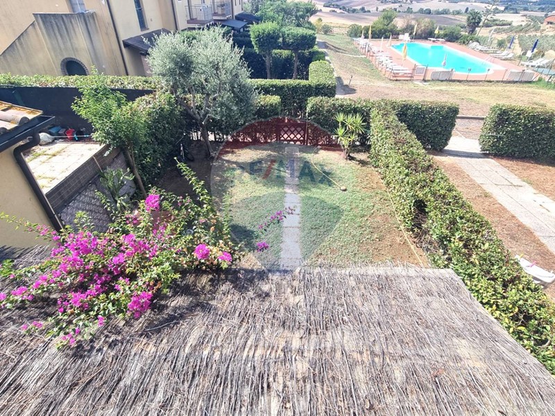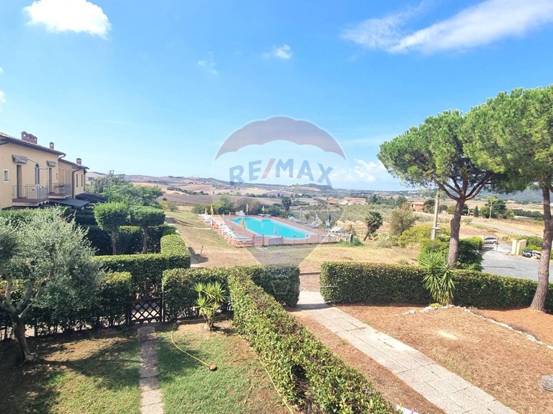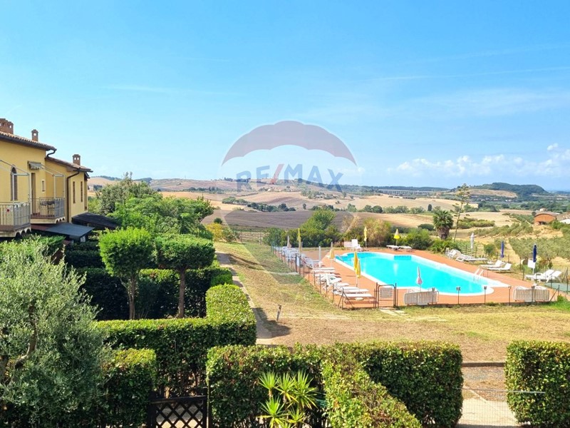 Questo residence era una vecchia fattoria, completamente ristrutturata e resa quello che è oggi. I 2 edifici ospitano alcuni appartamenti e quello che vi proponiamo ha il suo ingresso da scale esterne, tenuto davvero bene pari al nuovo. L'immobile si compone di cucina/salone, bagno finestrato e camera da letto con vista panoramica su piscina, mare e colline toscane.