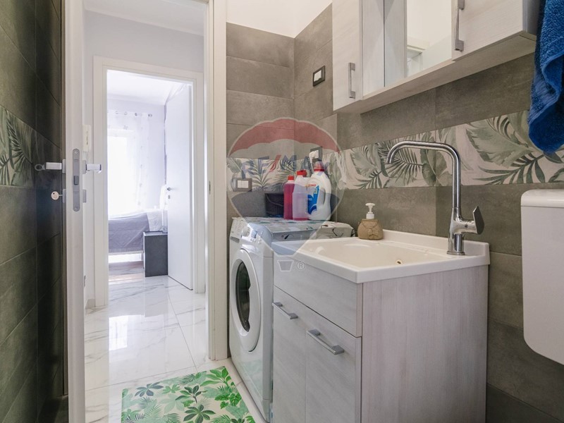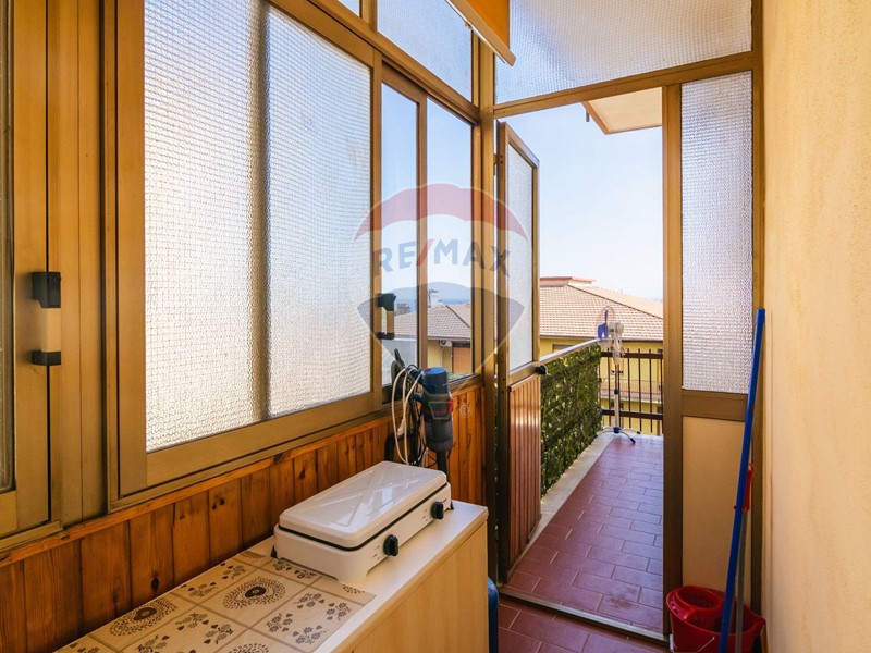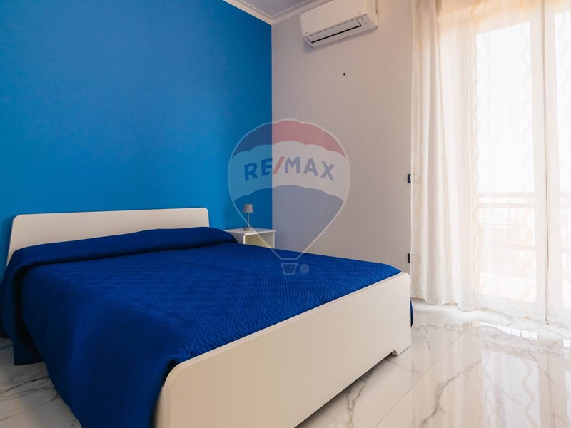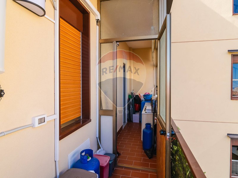 a seguire una camera da letto matrimoniale, una camera da letto per ragazzi, un bagno con box doccia, una comoda lavanderia e un'ulteriore camera con accesso al balcone con veranda con scorcio sulla costa Catanese.