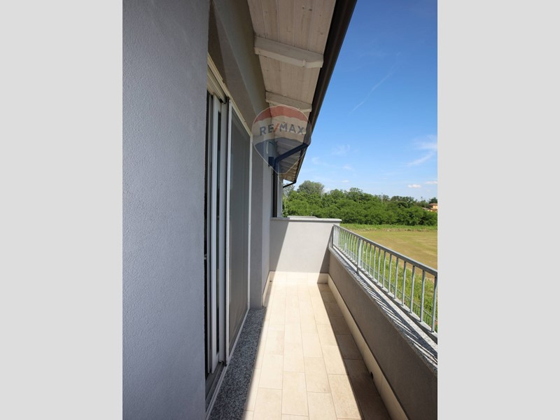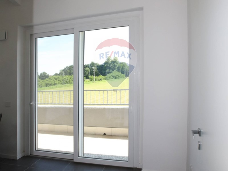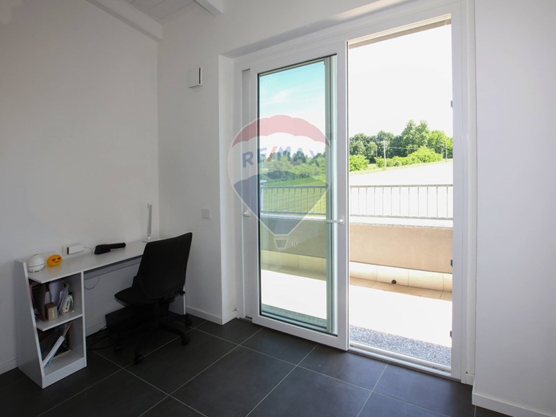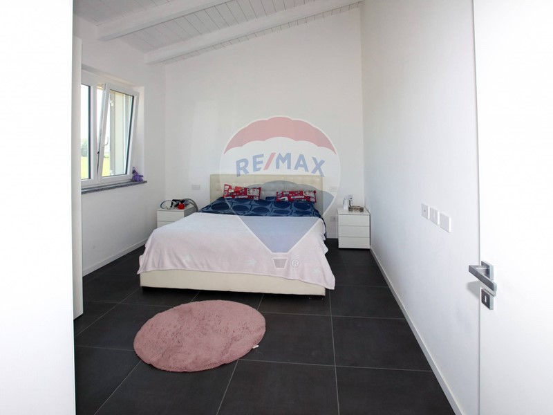 Vetrata panoramica con affaccio sul verde del giardino posteriore, vista campagna molto rilassante. Sempre sul retro si trova un altro comodo accesso all'abitazione e al vialetto che conduce alla piazzola ecologica privata