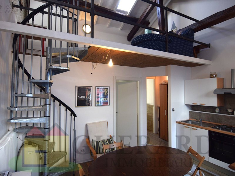 Lingresso si apre su un grazioso soggiorno con angolo cottura, camera da letto matrimoniale e un bagno finestrato con doccia. Un elegante soppalco / sottotetto finestrato di quasi 14 mq, offre uno spazio versatile, ideale anche come camera per ospiti, studio o palestra.