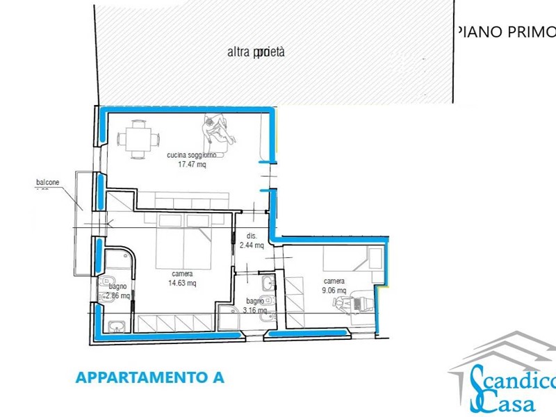 In piccola palazzina in fase di COMPLETA RISTRUTTURAZIONE, appartamento di circa 50 mq posto al primo piano senza ascensore, composto da zona giorno in open space con cucina a vista, una camera da letto matrimoniale con accesso al balcone, una camera singola, due servizi finestrati.