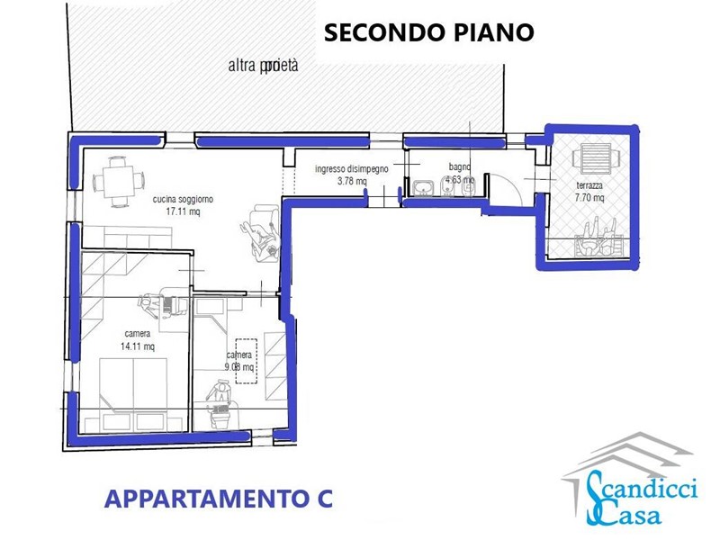 In piccola palazzina in fase di COMPLETA RISTRUTTURAZIONE, appartamento di circa 50 mq posto al secondo piano senza ascensore, composto da zona giorno in open space con cucina a vista, una camera da letto matrimoniale, una camera singola, servizio finestrato con acceso a TERRAZZA.