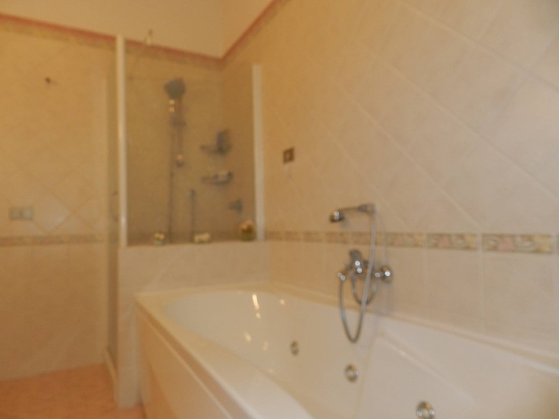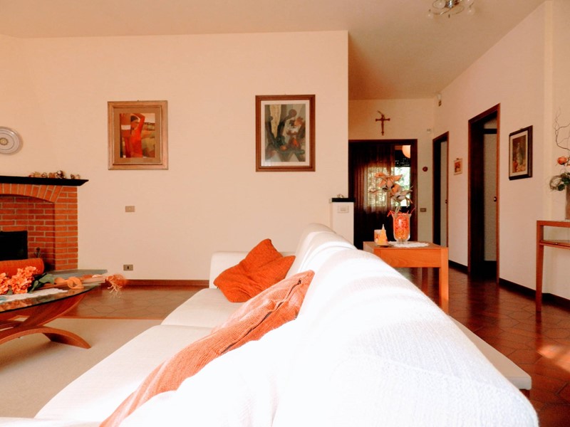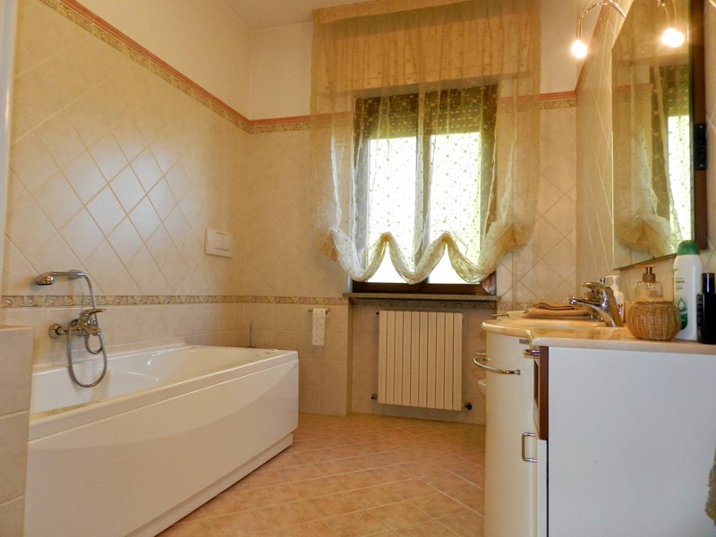 Al piano terreno: soggiorno-pranzo, cucina abitabile con accesso al giardino, salottino di collegamento interno, tre camere e due bagni con doccia.