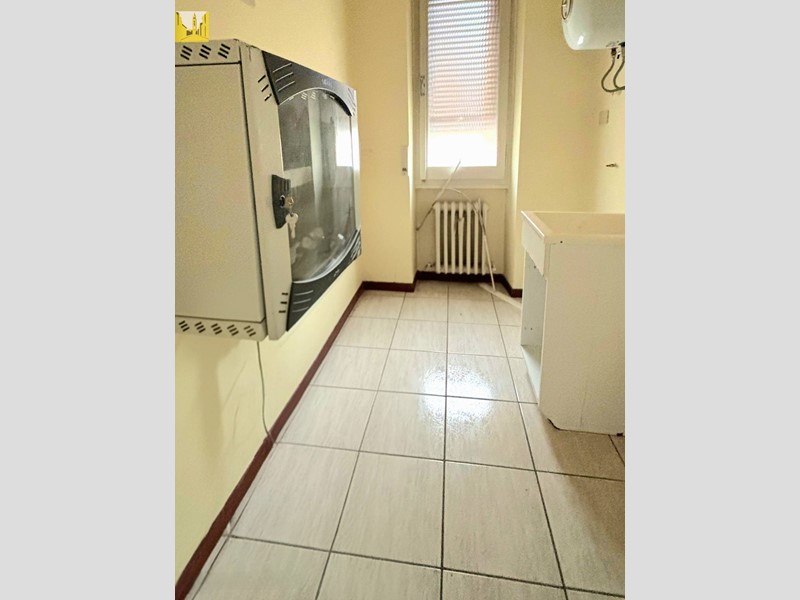 L'abitazione sita al PIANO PRIMO dotata di ascensore nel cuore della citta' (antistante il Municipio) dispone di DOPPIO INGRESSO ed e' composta da ampio soggiorno, cucina abitabile, lavanderia, disimpegno, tre camere matrimoniali, due bagni con doccia.
