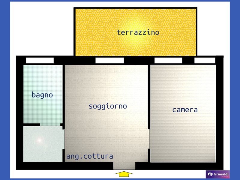 Dall'ingresso si accede alla zona living composta da Soggiorno con cucina a vista e uscita al terrazzino, molto spazioso, comodamente vivibile. Nel soggiorno, il comodo divano è anche letto matrimoniale.