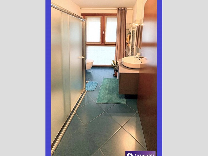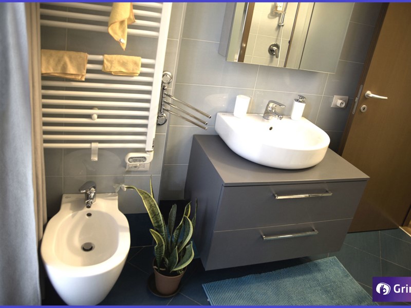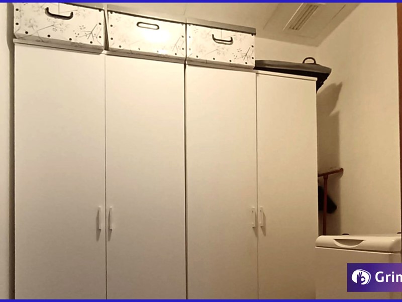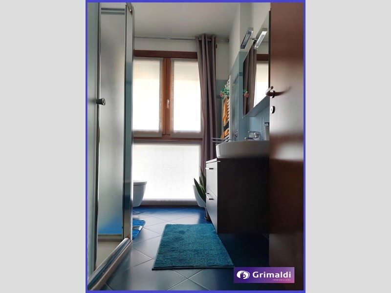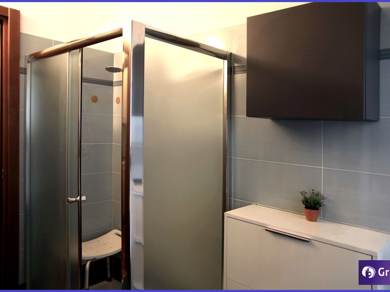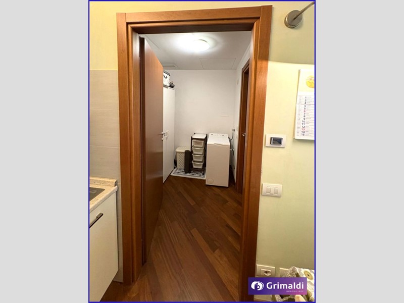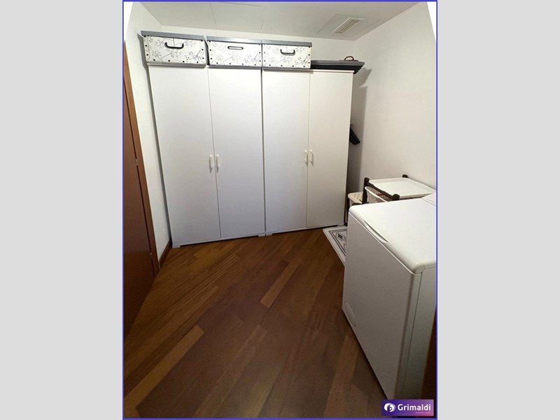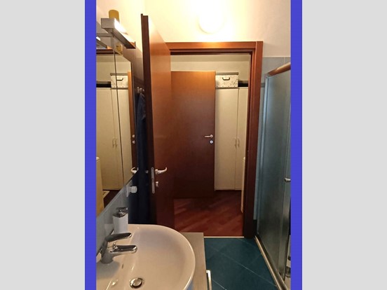 Da un lato troviamo il disimpegno con un mobile/ripostiglio e la lavatrice, ed il bagno (finestrato, dotato di grande doccia);