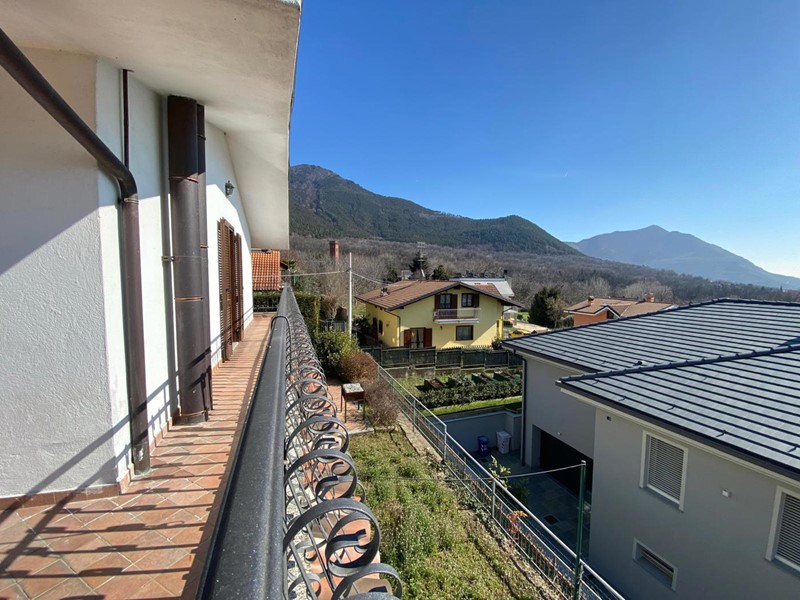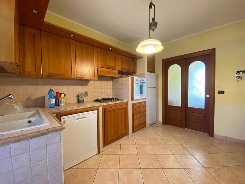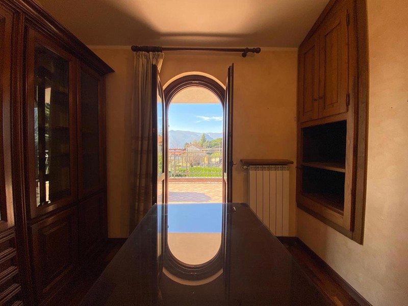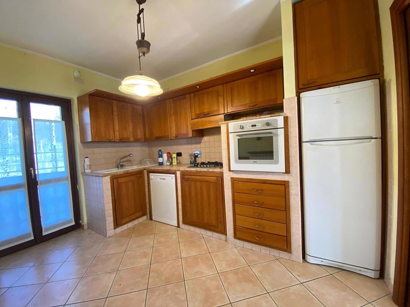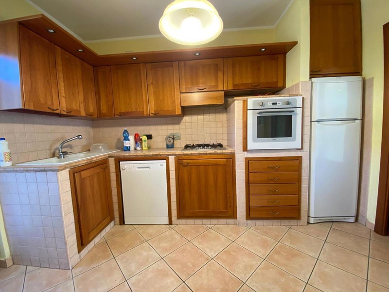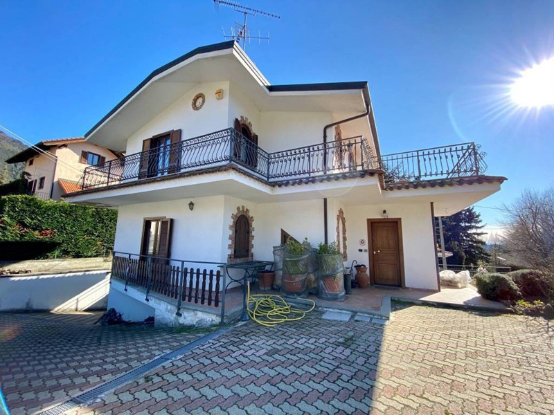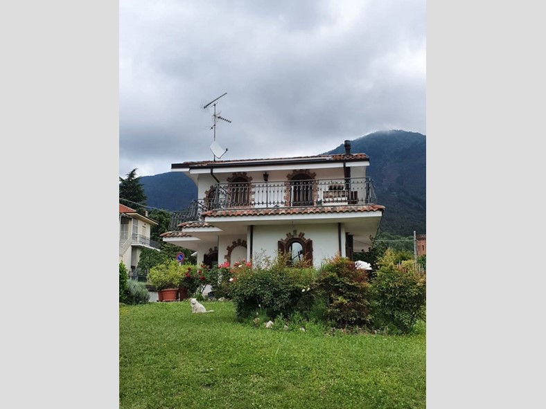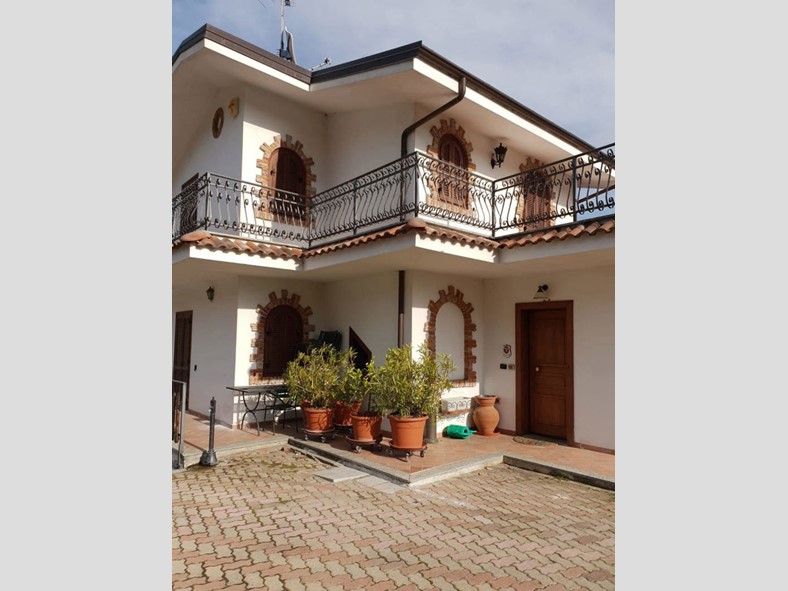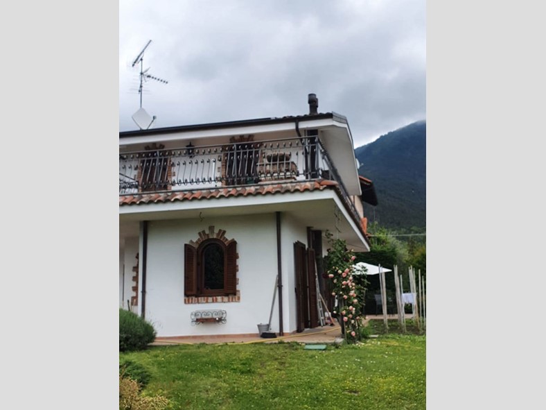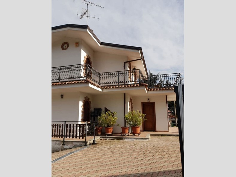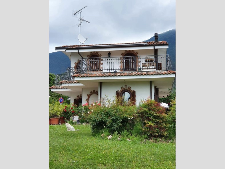 L'immobile si sviluppa su due piani fuori terra oltre al piano interrato ed è così suddiviso: al piano terra, dal portoncino blindato, si è accolti dall' ingresso su salotto con camino a legna, proseguendo vi è il soggiorno comunicante con la cucina abitabile, dotata di cucina in muratura. Al piano vi è un bagno finestrato e dotato di vasca. Tramite scala interna in muratura, si accede al piano superiore, con pavimentazione in parquet, dove troviamo tre camere da letto, disimpegno e un bagno finestrato e dotato di doccia. Tutti gli ambienti hanno accesso al balcone, che abbraccia l'abitazione per poi trasformarsi in terrazzo con vista panoramica. Nel disimpegno troviamo un comodo armadio a muro ricavato in una nicchia.