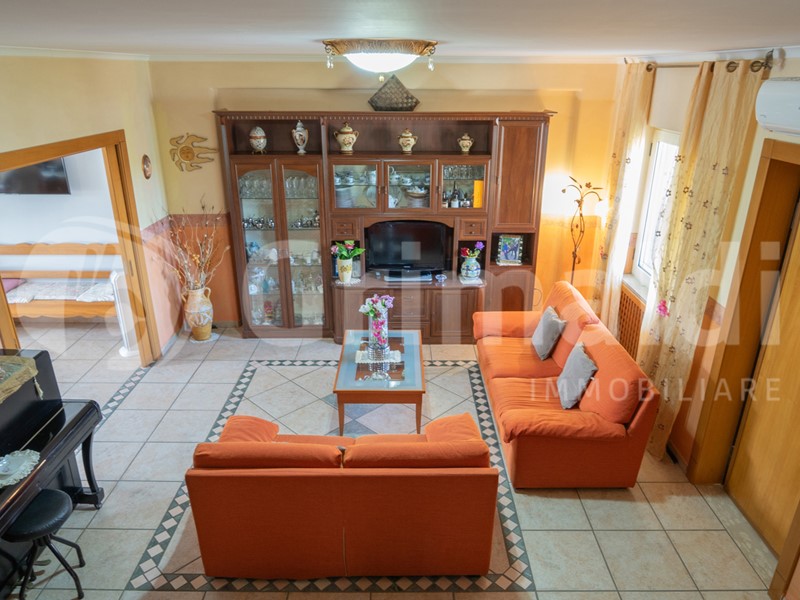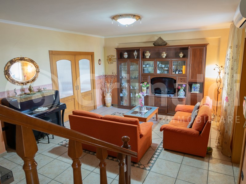 Un percorso pedonale accede all'ingresso principale, di Via Vittorio Emanuele,  circondato da un piccolo e grazioso giardinetto, dove con pochi gradini  raggiungiamo il portone, il quale ci permette l'accesso in un ampio salone, servito su un piano rialzato,  in modeste condizioni, fornito di finestra   ed una porta scorrevole che ci fa accedere alla cucina abitabile, con camino dove potrai riscaldarti in inverno,   e se ti piace la cucina alla brace potresti  anche usufruire di ciò  per cucinare; inoltre  presenta   una balconata luminosa , li' dove vediamo il secondo ingresso sul retro,  scendendo i gradini notiamo l'ampio cortile disteso,  in  gran parte pavimentato , mentre invece il resto gode di tutto lo spazio che hai sempre  desiderato. Adatto soprattutto per chi ha animali domestici, questa villetta sarebbe ideale, il tuo amico a quattro zampe sarà felice di correre e giocare all'aria aperta  in uno spazio tutto suo.    Un' area  che potrai adibire  come solarium , con possibilità di montare una piscina e goderti cosi i mesi più caldi con la tua famiglia, rilassandoti , aggiungendo una postazione con gazebo, un tavolino  con sedie  e ripararti nelle ore più afose.