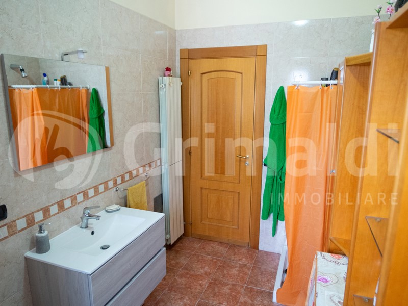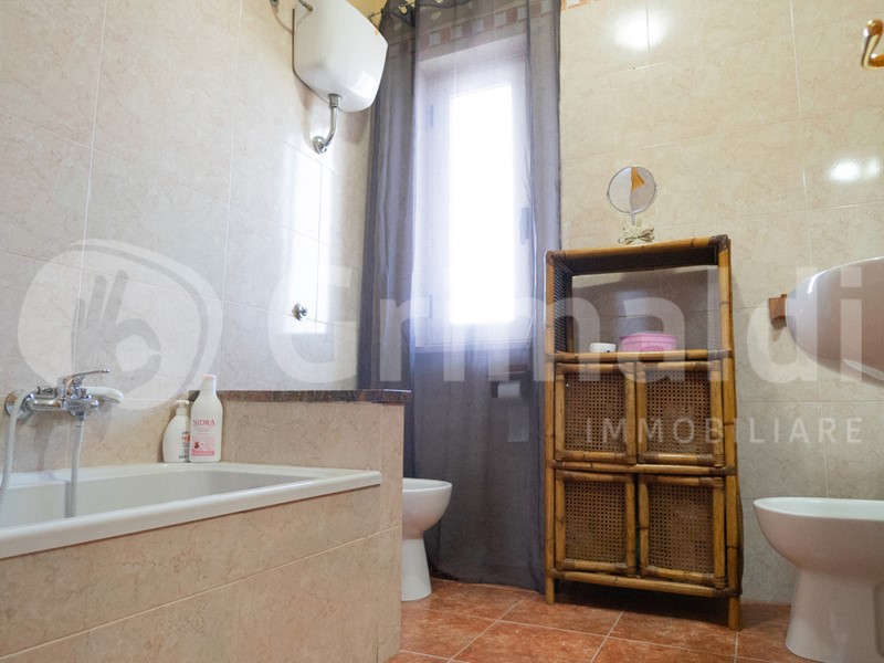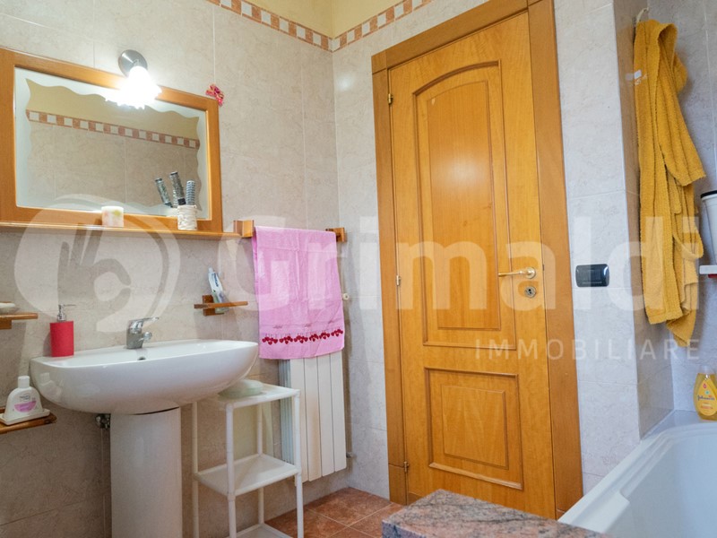 Sempre sul piano rialzato infine c'è un primo bagno  con finestra, rivestito  da mattonelle  di colore nude.   Su ogni piano  è situato un bagno, soluzione comoda per chi non vorrebbe mai salire e riscendere, la fantastica scala in marno con passamano in legno posto nel salone , la quale ci permette di dirigerci  alla zona notte al primo piano.
