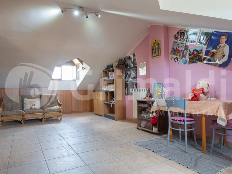 Al secondo e ultimo piano della villetta, ci accoglie una magnifica mansarda, in quest' ultima potrai divertirti nell'immaginazione, dove magari avrai sempre desiderato di vivere in una suite matrimoniale come quella di un hotel a 5 stelle ,  qui c'è lo spazio giusto per realizzare il tuo sogno, e rendere l'ambiente più caldo e soffuso  con un impianto di luci a led,   puntato su una jacuzzi e su un letto matrimoniale, oppure potrai  usufruirne come più desideri, per organizzazione di feste  con parenti e  amici, volendo c'è la predisposizione  anche di un piano cottura , dove potrai cucinare per essi o preparare pietanze sfiziose. Se invece siete una famiglia amante dello sport, dei giochi, potreste adibirla ad una sala attrezzi, un bigliardino e tutti altri strumenti  che i tuoi hobby permettono di aggiungere ,  un luogo  quindi completamente di svago, che renda felici tutti.