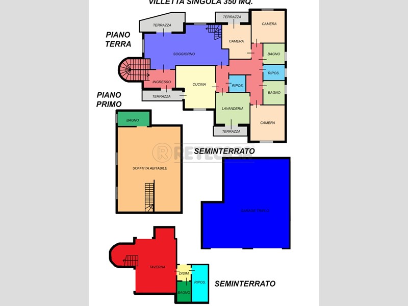 L'immobile è degli anni 90 ed è stato ristrutturato circa 15 anni fa con finiture di pregio, è composto da ampio ingresso che da l'affaccio su una ampia e luminosa sala doppia con terrazza, un piccolo disimpegno che da su una grande cucina abitabile arredata con eleganza e con terrazzino, un ripostiglio e una grande e comoda lavanderia/disbrigo con terrazza coperta, proseguendo per il disimpegno troviamo due grandi camere matrimoniali di cui una con terrazzo, due ampi bagni finestrati di cui uno con doccia e uno con vasca, e una altra camera matrimoniale. Nella sala una elegante scala in legno a vista ci porta al livello superiore dove salendo troviamo un fantastico mansardato tutto abitabile in open space da 70 mq. con un bagno e una altra camerina. Al seminterrato troviamo una grande taverna completamente arredata di cucina e con un bel caminetto, un bagno finestrato e un ripostiglio, inoltre una porta tagliafuoco che ci porta in un grandissimo garage da 50 mq con doppio basculante elettrico, e all'esterno troviamo un giardino da 250 mq. che circonda l'immobile. Tutte le camere da letto sono dotate di clima, compresa anche la sala e la cucina, impianto di allarme già installato. Per info Antonio 3473628427
