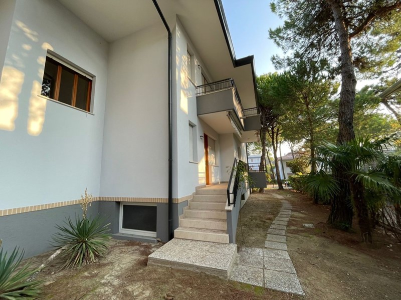 Vendesi Lignano Pineta in condominio di sole 10 unità, appartamento al piano rialzato con ingresso indipendente composto da soggiorno, cucina, due camere doppie, bagno finestrato con box doccia, terrazzo, aria condizionata, posto auto esterno, garage e cantina.
