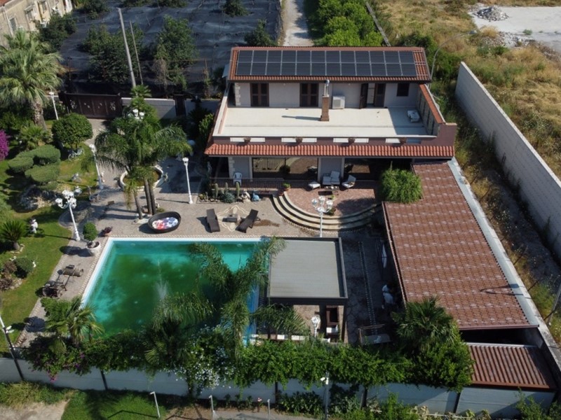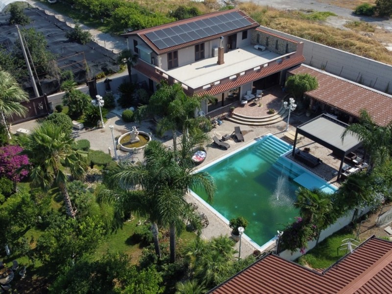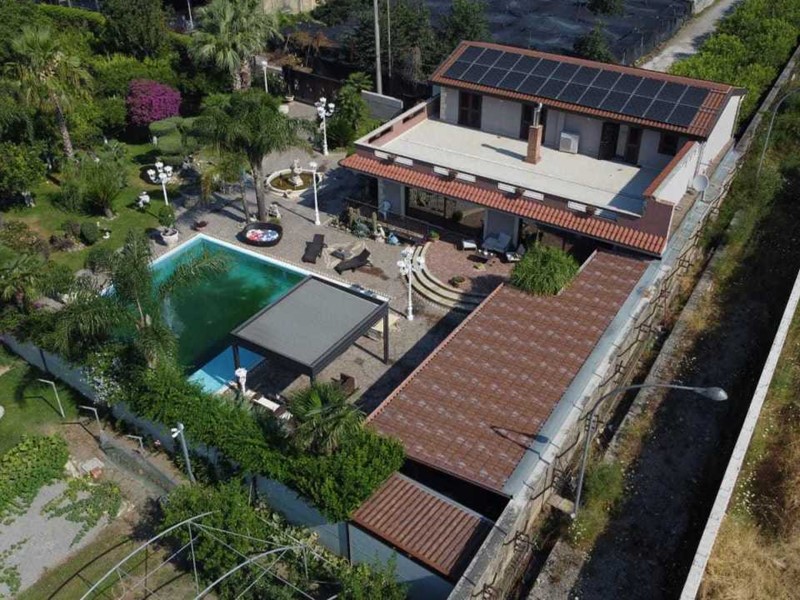 In una cornice esclusiva e riservata, proponiamo in vendita una prestigiosa villa su due livelli con ampi spazi interni ed esterni, perfetta per chi desidera vivere nel comfort più assoluto senza rinunciare all’eleganza. Al piano terra si apre un salone di circa 180 mq, impreziosito da due camini che rendono l’ambiente accogliente e raffinato, affiancato da una moderna cucina ad isola di generose dimensioni. Sullo stesso livello si trova un bagno di circa 30 mq, un vero e proprio ambiente wellness, dotato di vasca idromassaggio Jacuzzi con tre sedute e due lettini, oltre a una doccia dalle dimensioni importanti (2x1 m). Il piano primo è dedicato alla zona notte: la camera padronale dispone di cabina armadio, locale tecnico e bagno privato con vasca idromassaggio, oltre a una comoda doccia in camera. A completare il livello, due camerette entrambe con bagno privato e doccia, ed un ampio terrazzo di circa 100 mq che regala spazi ideali per il relax. All’esterno, la proprietà si distingue per un giardino unico nel suo genere. Un’area pavimentata di circa 1.000 mq ospita una spettacolare piscina a sfioro di 10x12 m, arricchita da zampilli, spiaggietta, soffianti e una scenografica cascata che scende da una roccia naturale. Accanto, una tettoia in legno ospita una cucina esterna completa di forno a legna, perfetta per momenti conviviali. Un ulteriore giardino di circa 1.000 mq, curato in ogni dettaglio, è arricchito da alberi pregiati e agrumi, un laghetto artificiale con pesciolini e una fontana con quattro giochi d’acqua. La villa dispone anche di un piano interrato di circa 200 mq, con locale tecnico e cantina. Gli accessori e le dotazioni rendono questa residenza all’avanguardia: impianto fotovoltaico da 6 kW con 10 kW di accumulo, impianto di allarme interno ed esterno, sistema di videosorveglianza con 16 telecamere, pozzo rivestito in pietra, serbatoio da 500 litri per acqua potabile, addolcitore e illuminazione esterna con pali modello “La Sonrisa”. Una proprietà di assoluto pregio, ideale per chi desidera una dimora signorile dotata di tutti i comfort moderni, immersa in uno scenario elegante e riservato.