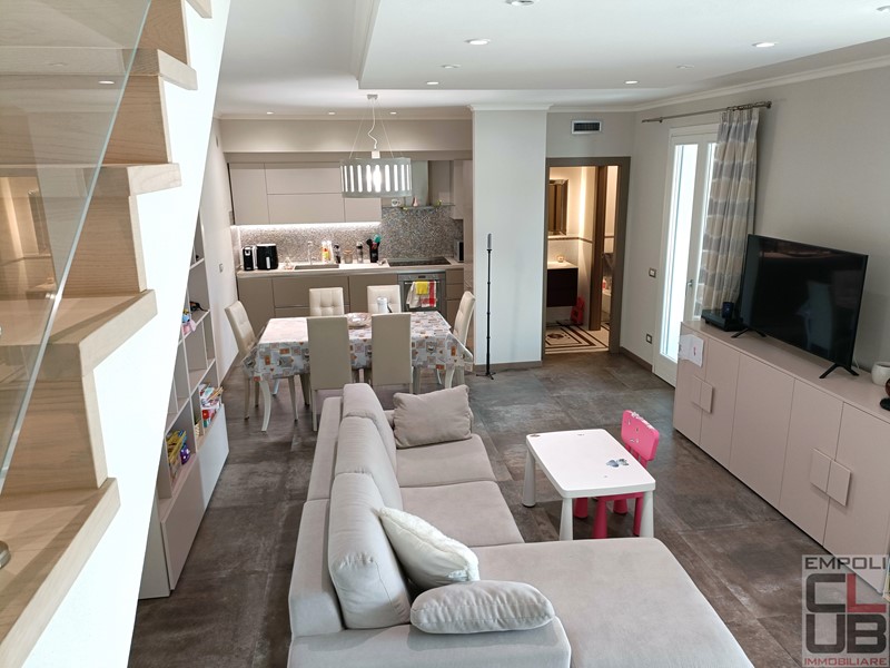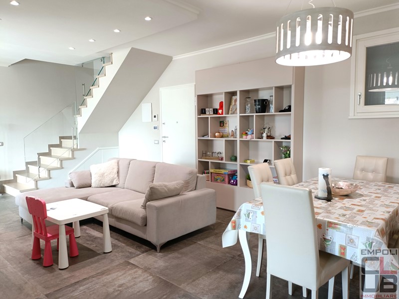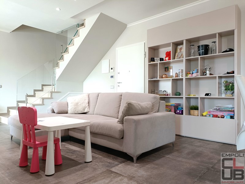 EMPOLI - RIF. P/0285 - ELEGANZA E COMFORT A EMPOLI. ATTICO DISPOSTO SU DUE LIVELLI, DOTATO DI DUE FANTASTICHE TERRAZZE VIVIBILI, ENTRAMBE PROTETTE A LOGGIA, RIPETTIVAMENTE DI MQ 33 E MQ 28. AL PIANO INTERRATO, GARAGE ESCLUSIVO DI MQ 20. INSERITO AL SECONDO E TERZO PIANO DI PALAZZINA DAI TRATTI ARCHITETTONICI DECISAMENTE MODERNI, COSTRUITA NEL 2018. AMPI SPAZI E DISTRIBUZIONE PERFETTA SU MQ 110 DI SUPERFICIE NETTA. DESIGN MODERNO E FINITURE DI ALTA QUALITA', IN POSIZIONE PRIVILEGIATA NEL CUORE DI EMPOLI. L'INTERO MOBILIO, DI PREGIO E PARI QUASI AL NUOVO, INCLUSO NELL'OFFERTA. POSSIBILITA' DI ACQUISTARE A PARTE, CANTINA ESCLUSIVA.