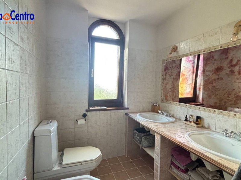 Al piano superiore troviamo un ampio disimpegno, una camera matrimoniale con cabina armadio, un balcone, altre due comode camere matrimoniali ed un servizio con doccia.