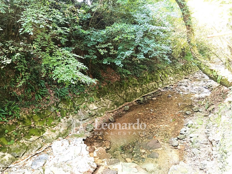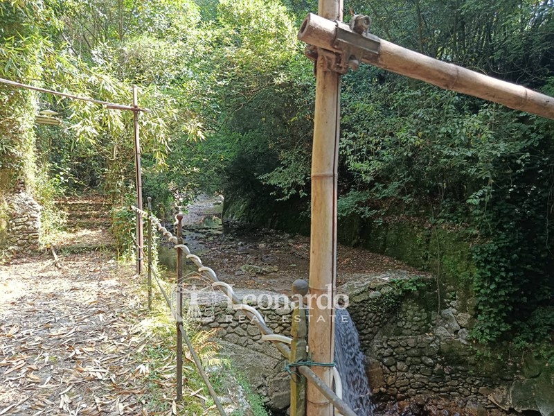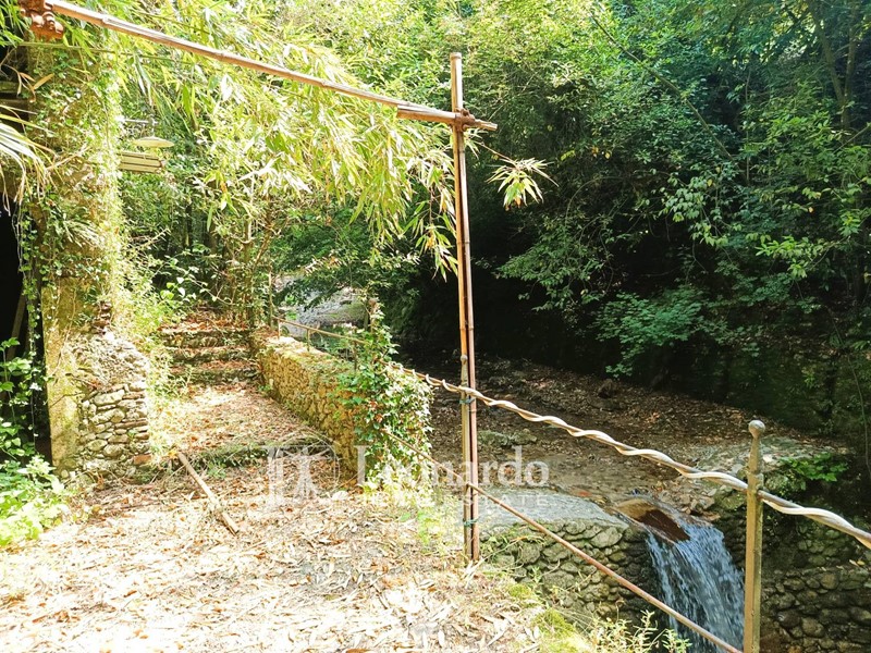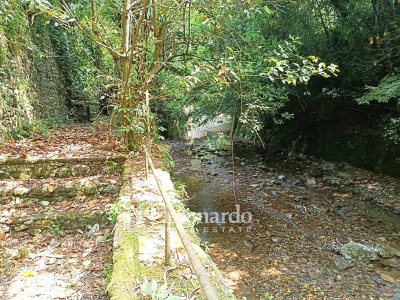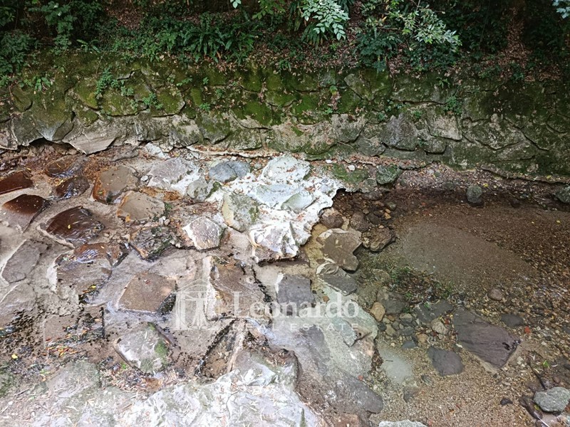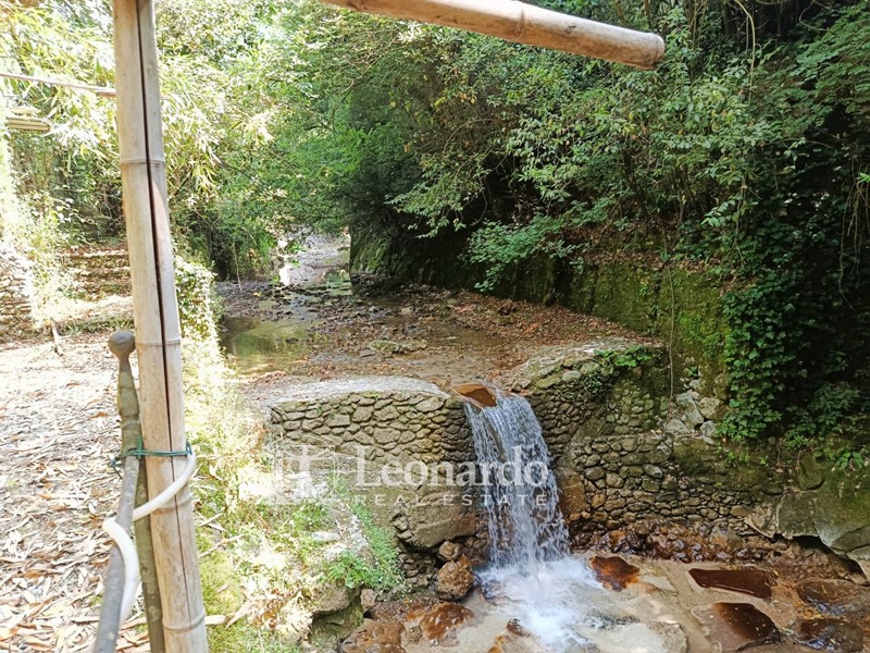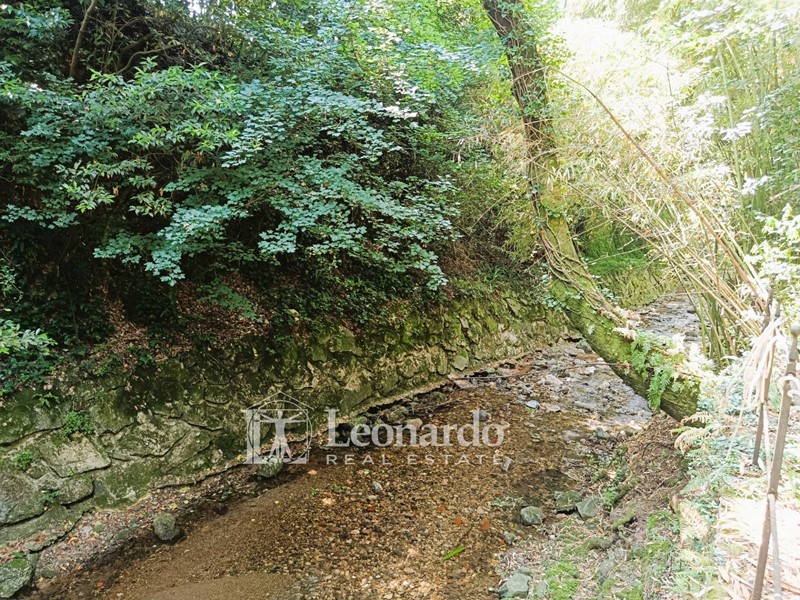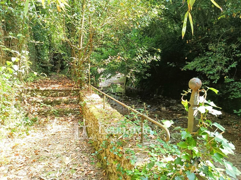 La proprietà gode di un ampio giardino pianeggiante che scende sul fiumiciattolo adiacente al magazzino e sul ponticello vicino all'ingresso dell'edificio principale che crea un ambiente esterno unico nel suo genere con il sottofondo del piacevole scorrere dell'acqua che si sposa al luminoso verde della vegetazione.