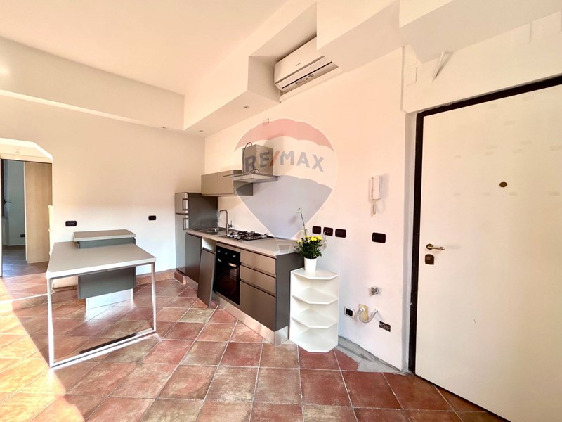 L'appartamento è composto da ingresso soggiorno ampio con cucina a vista, camera matrimoniale con ampio ripostiglio in quota, bagno cieco completo di box doccia, sanitari e lavatrice. Completa la proprietà una cantina di pertinenza.