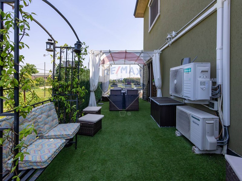 Allesterno, un grande giardino privato di 600 mq offre ai tuoi figli lo spazio per giocare in libertà e in sicurezza, mentre tu ti rilassi o organizzi pranzi allaperto. A disposizione anche una comoda dependance con cucina, perfetta per feste in famiglia o come spazio per ospiti. Il box doppio in lunghezza completa lofferta già ricca di comfort.