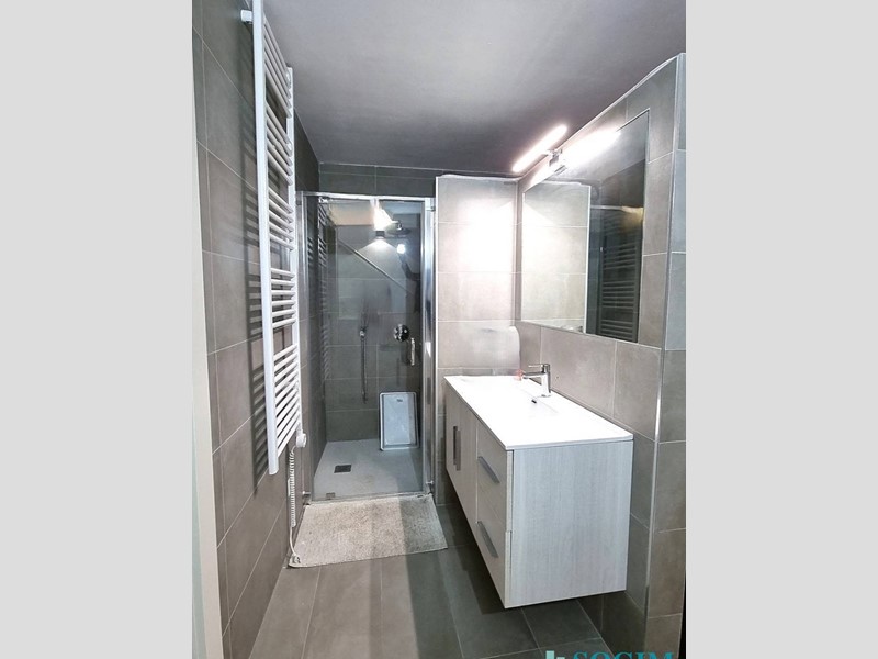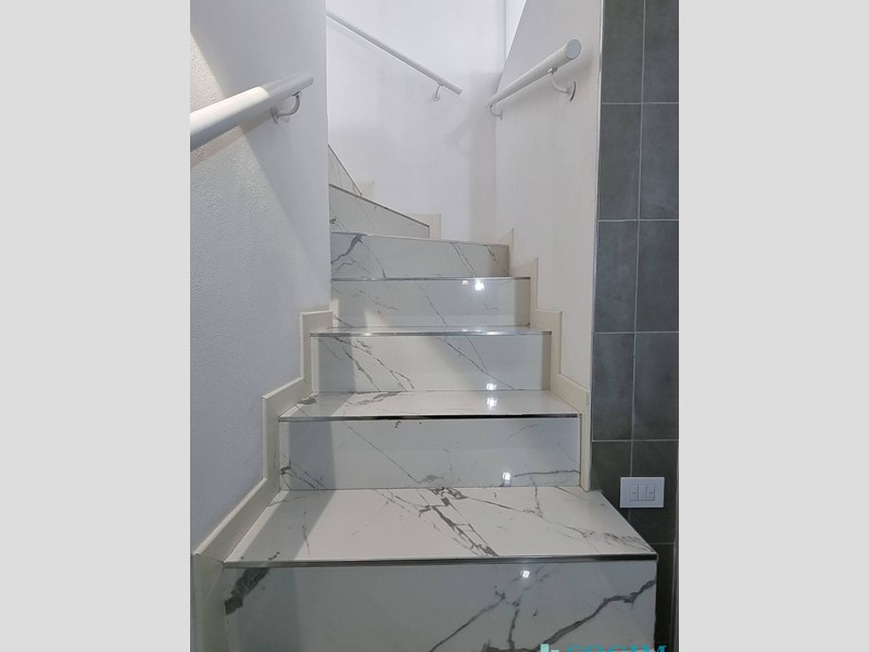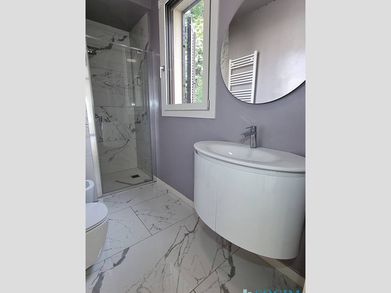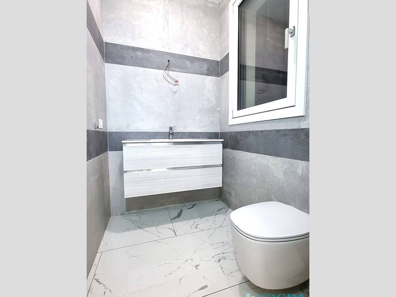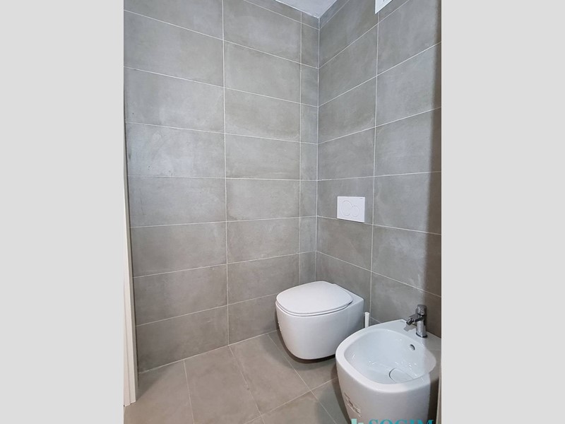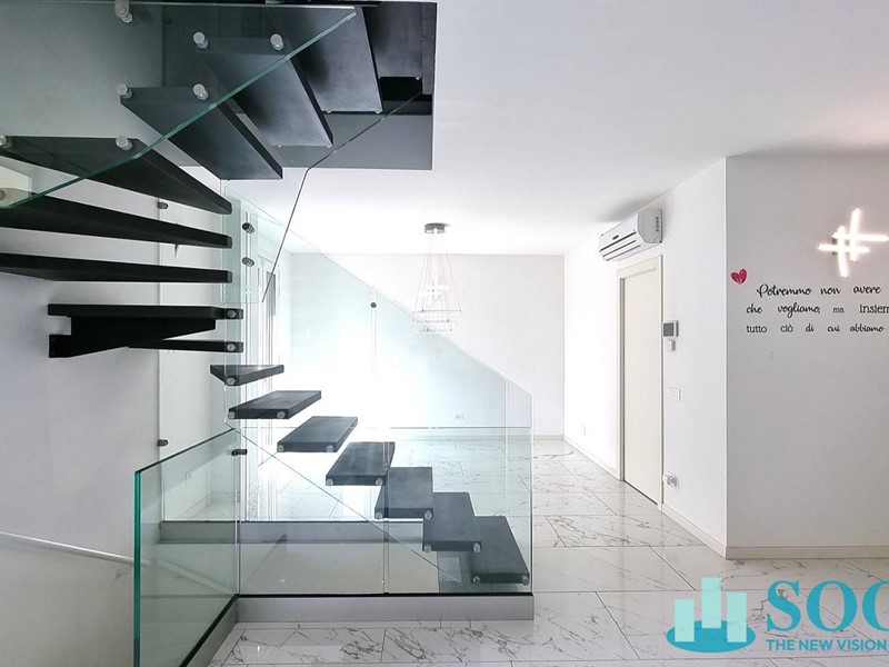 Le pavimentazioni sono in gres porcellanato con piastrelle di grande formato; gli infissi esterni, prevalentemente portefinestre, sono realizzati con struttura in p.v.c. doppio vetro, con apertura anche a ribalta e persiane esterne in ferro di tipo blindato. Le porte interne sono in legno, prevalentemente scorrevoli ad incasso. I bagni sono dotati di sanitari sospesi. Terrazzino e balconi sono pavimentati con piastrelle di gres e serviti da tendaggi esterni.