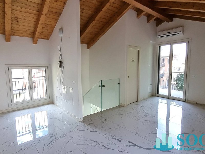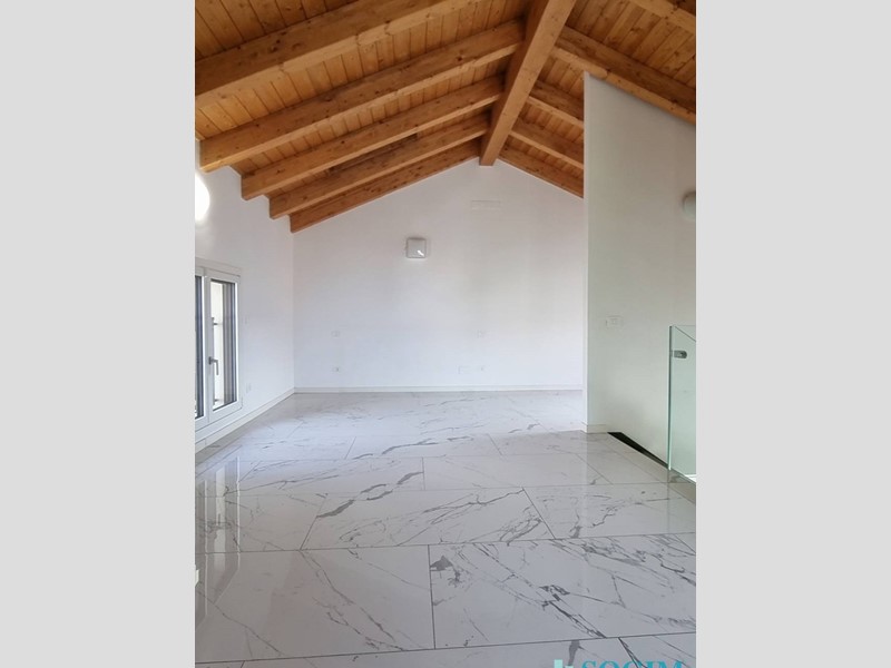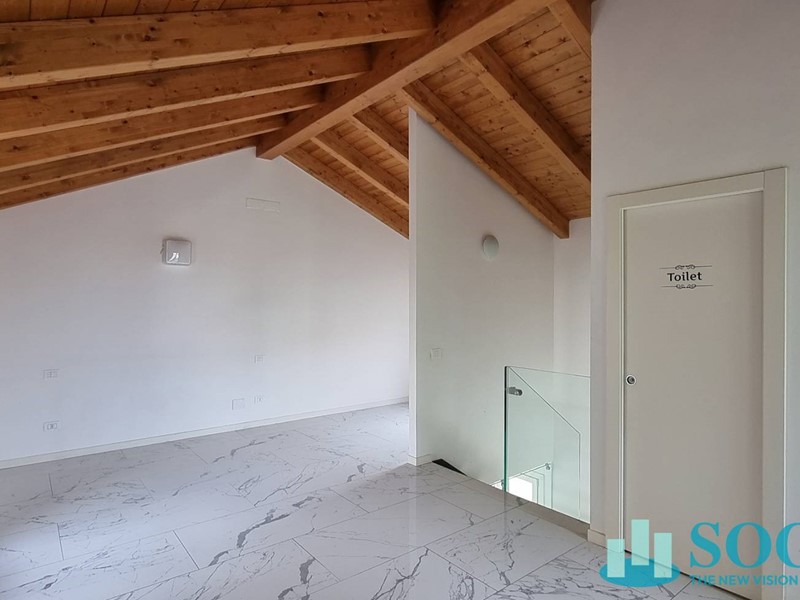 La scala collega anche il Piano Secondo (abitabile), spazioso e suggestivo, con la struttura del tetto in legno con travi a vista. Anche questo piano è un open space, divisibile, con ampio bagno con doccia idromassaggio. Completa il piano un comodo terrazzo.