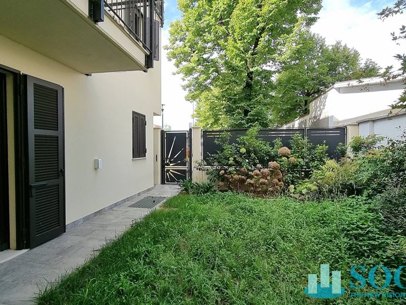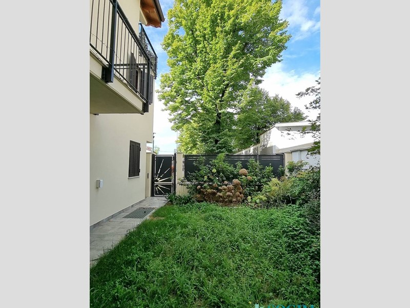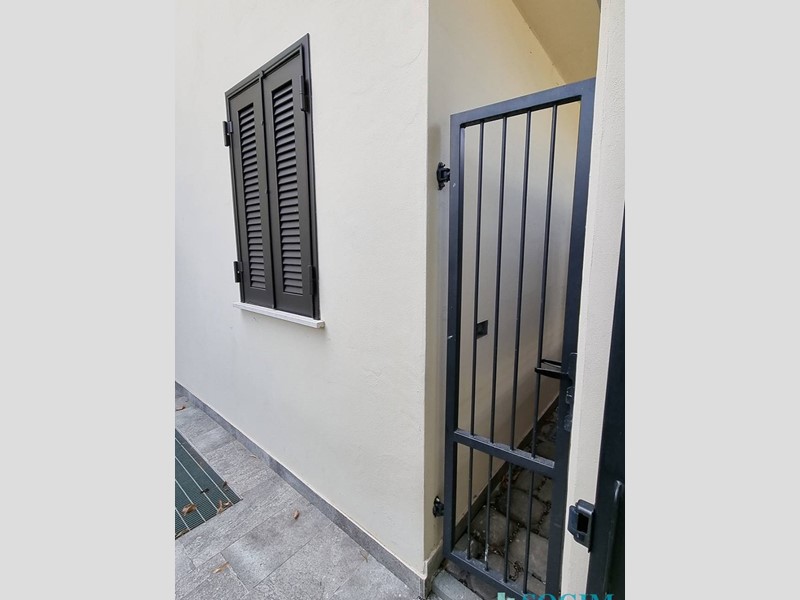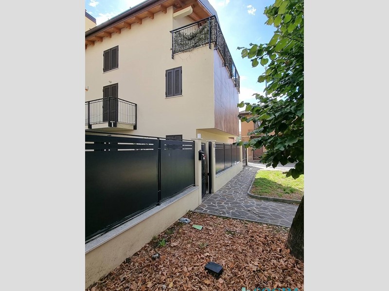 La proprietà ci accoglie in un ampio giardino e cortile privati raggiungibili da zona pubblica pedonale, con recinzione privata in cemento con pannelli e cancelli pedonali.