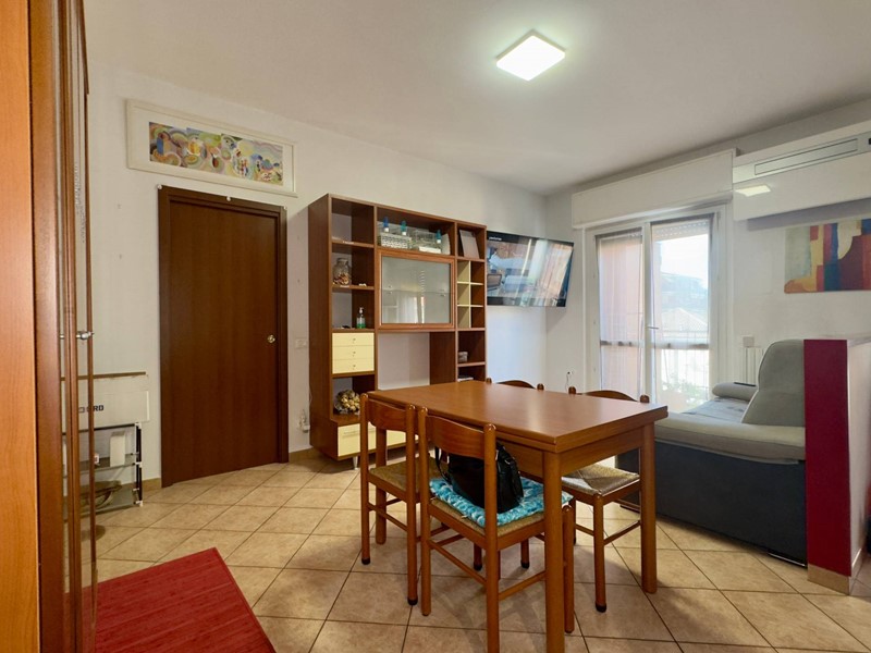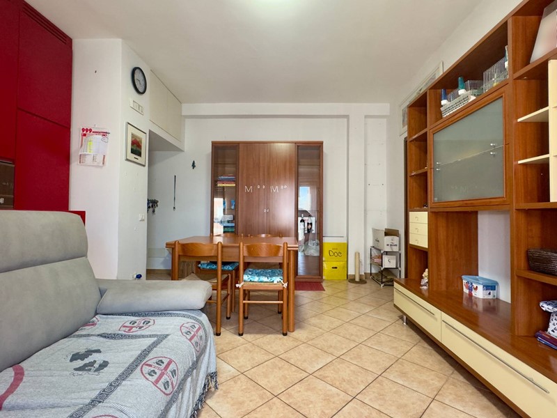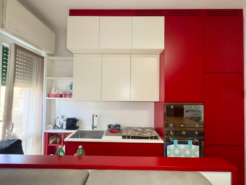 L'appartamento si apre direttamente sulla zona giorno, un ambiente moderno e funzionale composto da soggiorno con cucina a vista, lambiente, luminoso ed accogliente, ha acceso ad un balcone con affaccio su Piazza Costa.